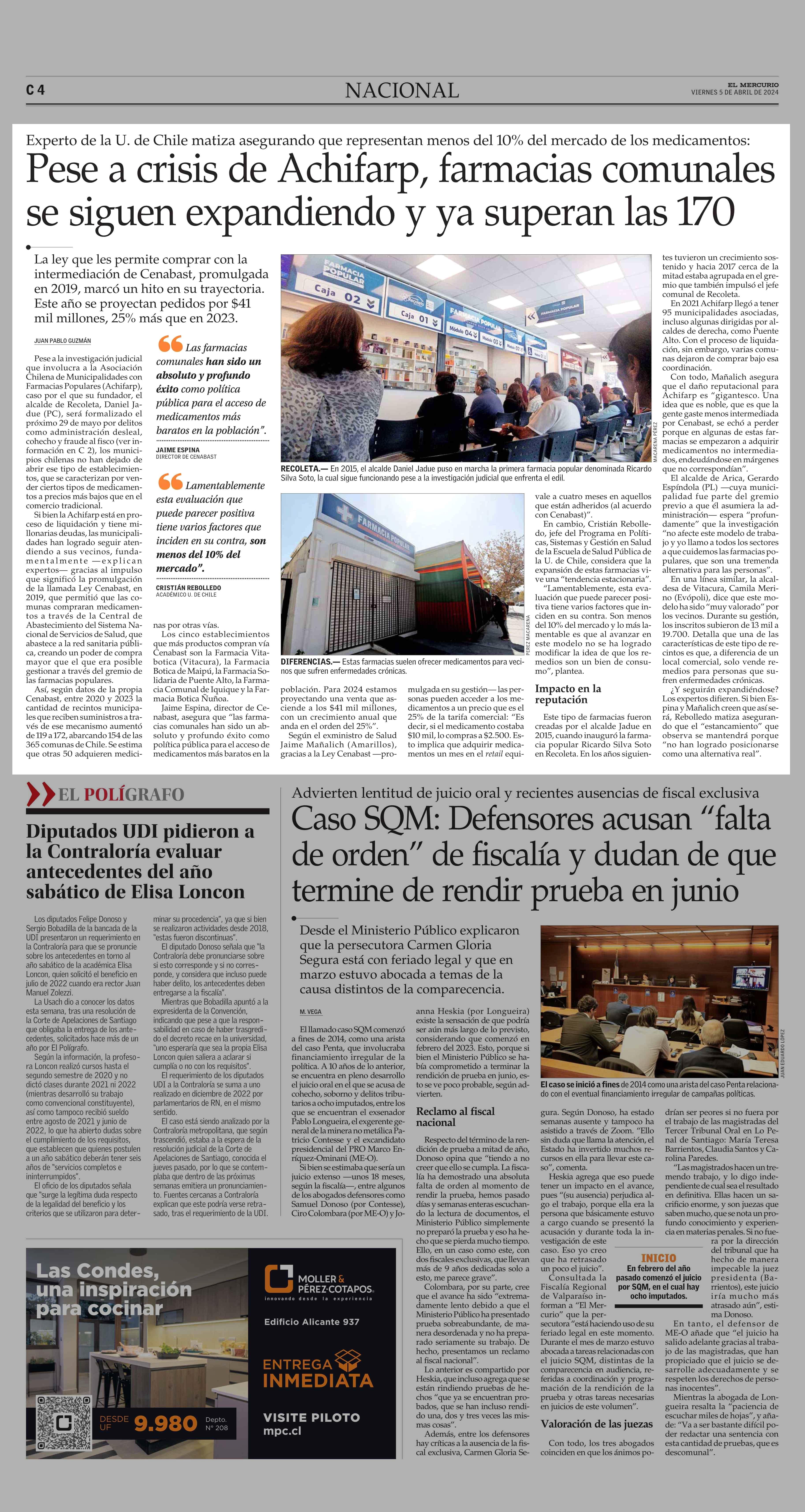 Pese a crisis de Achifarp, farmacias comunales se siguen expandiendo y ya superan las 170 05-04-2024 El Mercurio |