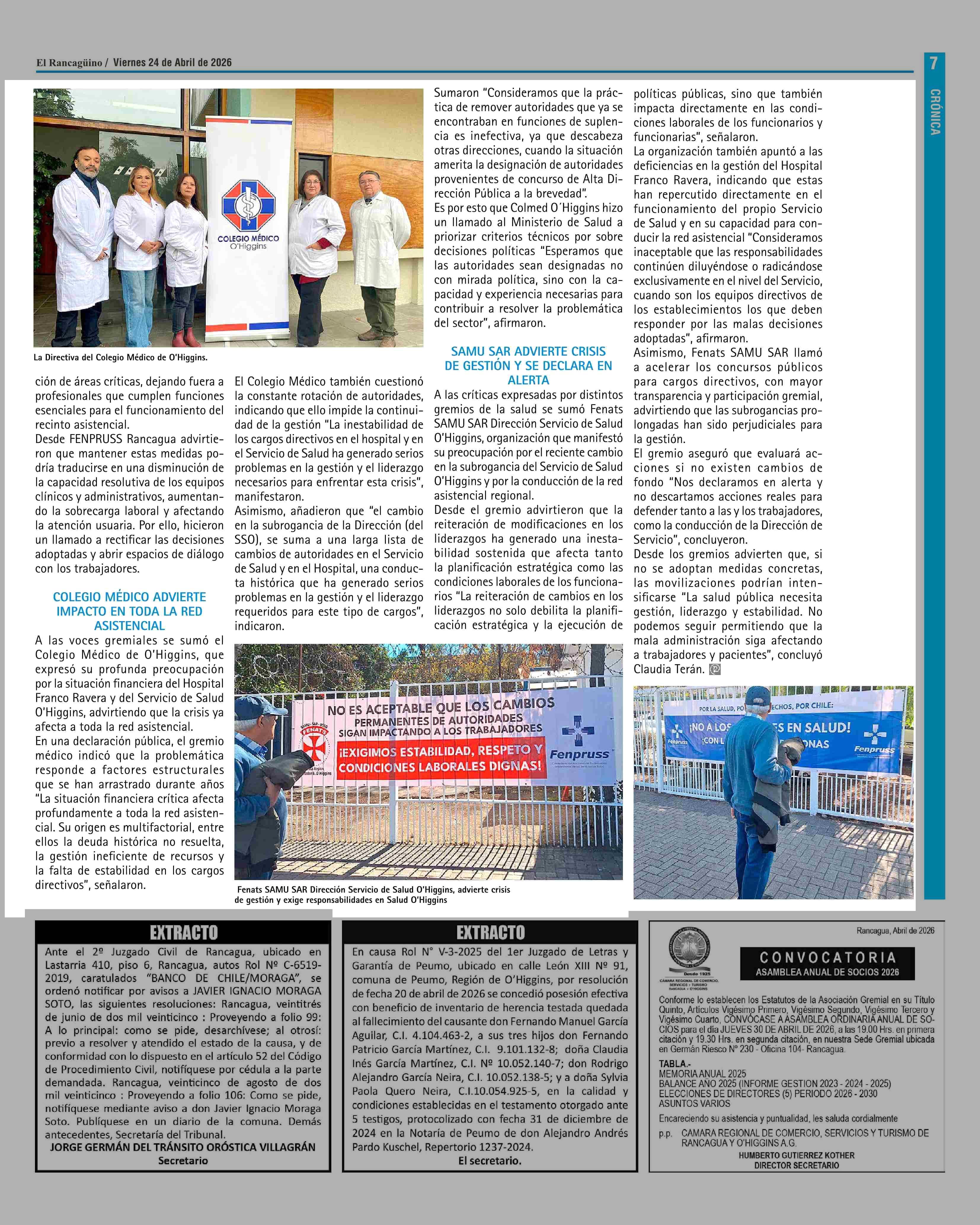 Fecha: 24-04-2026 Sector: Noticia general Región: Región del Libertador General Bernardo O'Higgins