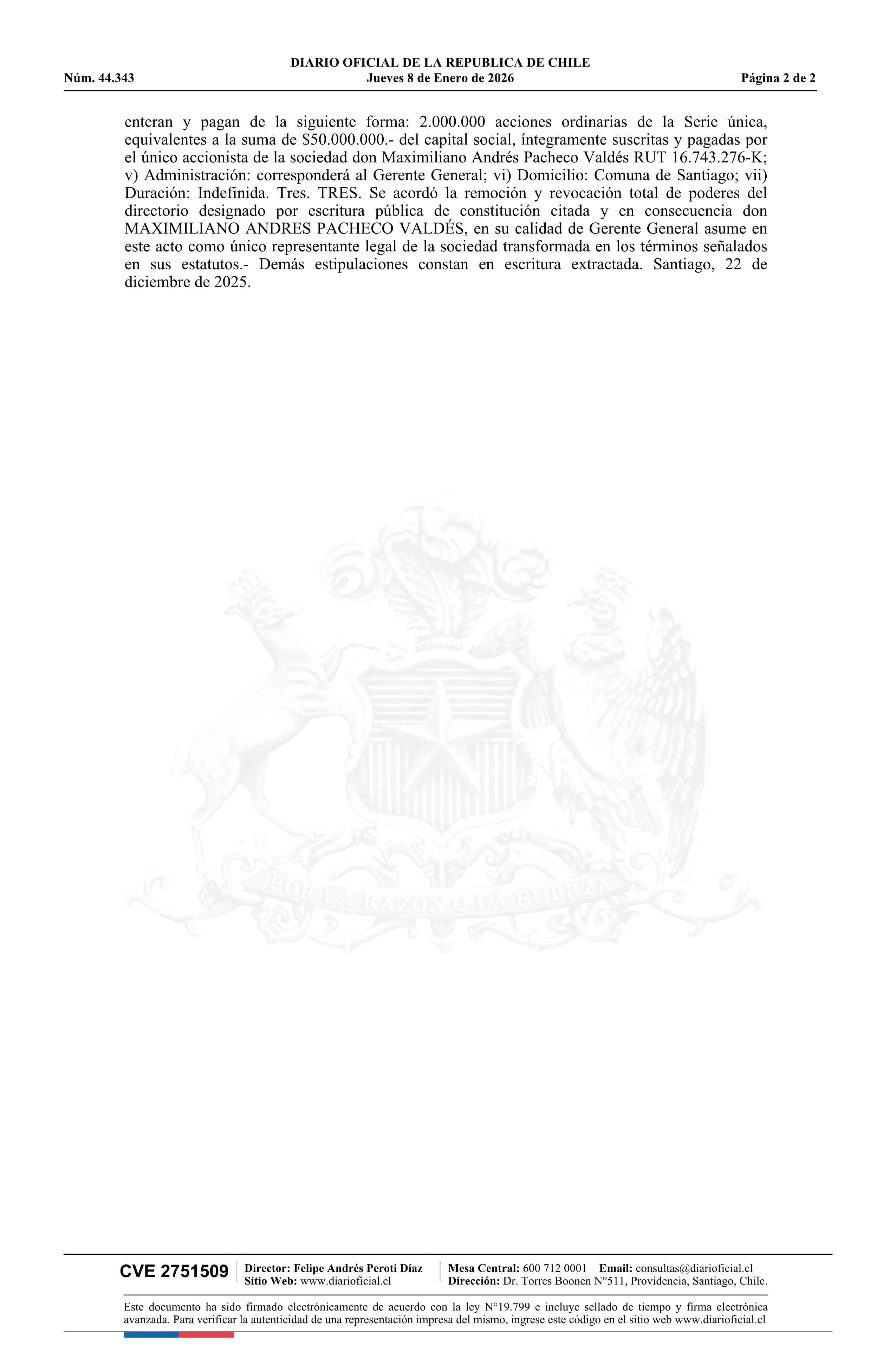 COMPAÑÍA DE INVERSIONES FINANCIERA MAX VALDÉS BUSINESS S.A. 76.930.644-7* 08-01-2026 Diario Oficial Edición Electrónica |