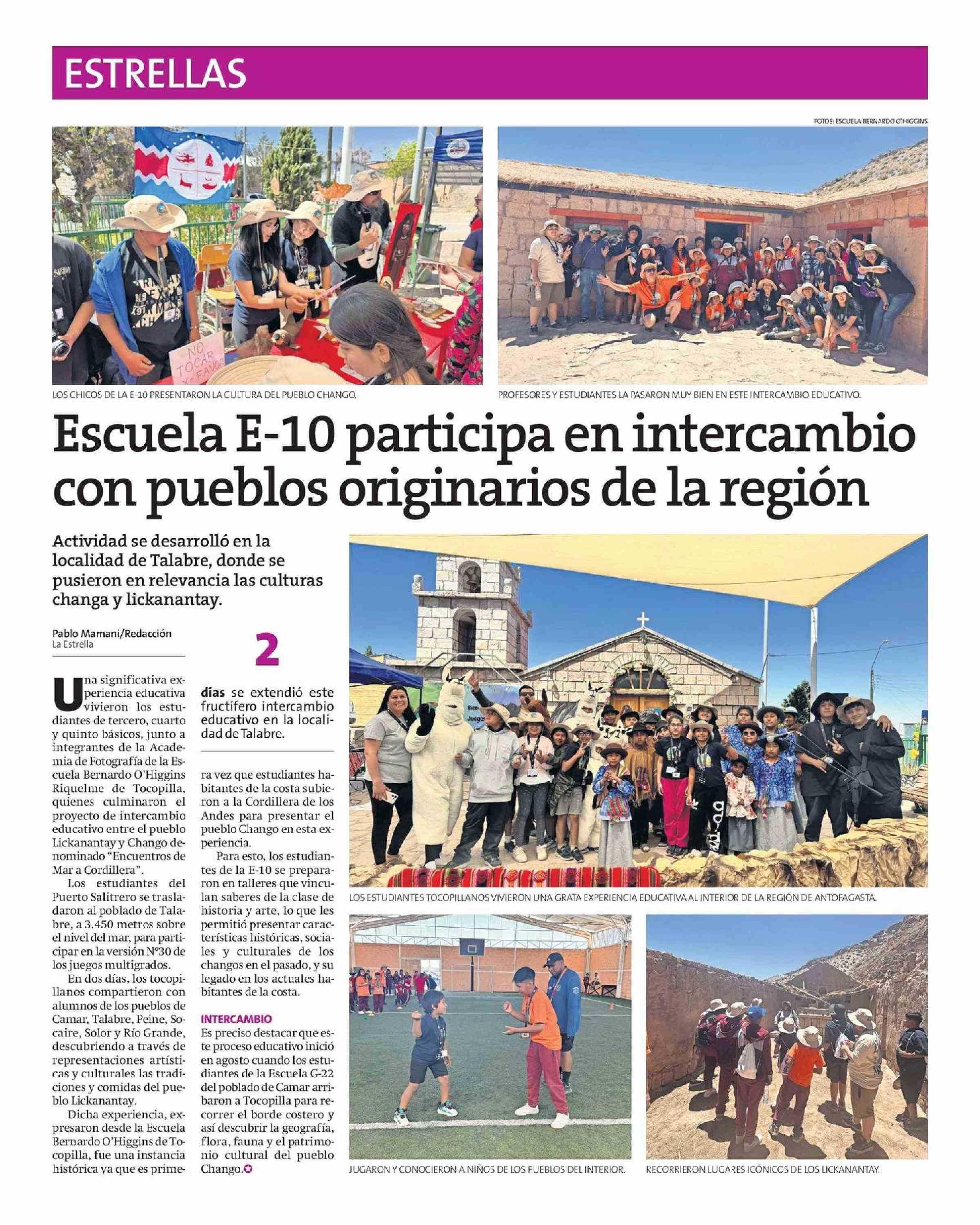 Escuela E-10 participa en intercambio con pueblos originarios de la región 27-11-2024 La Estrella de Tocopilla |