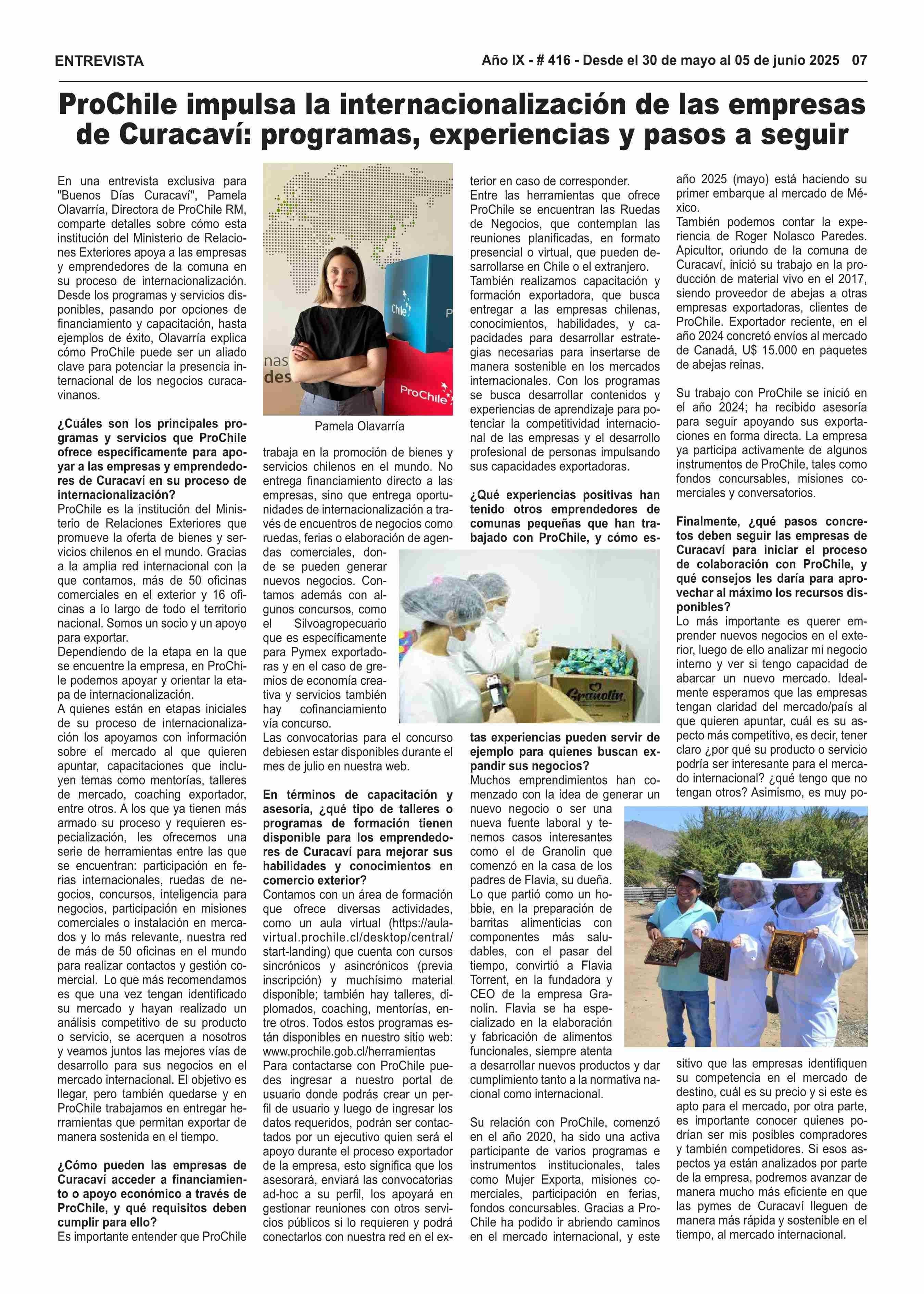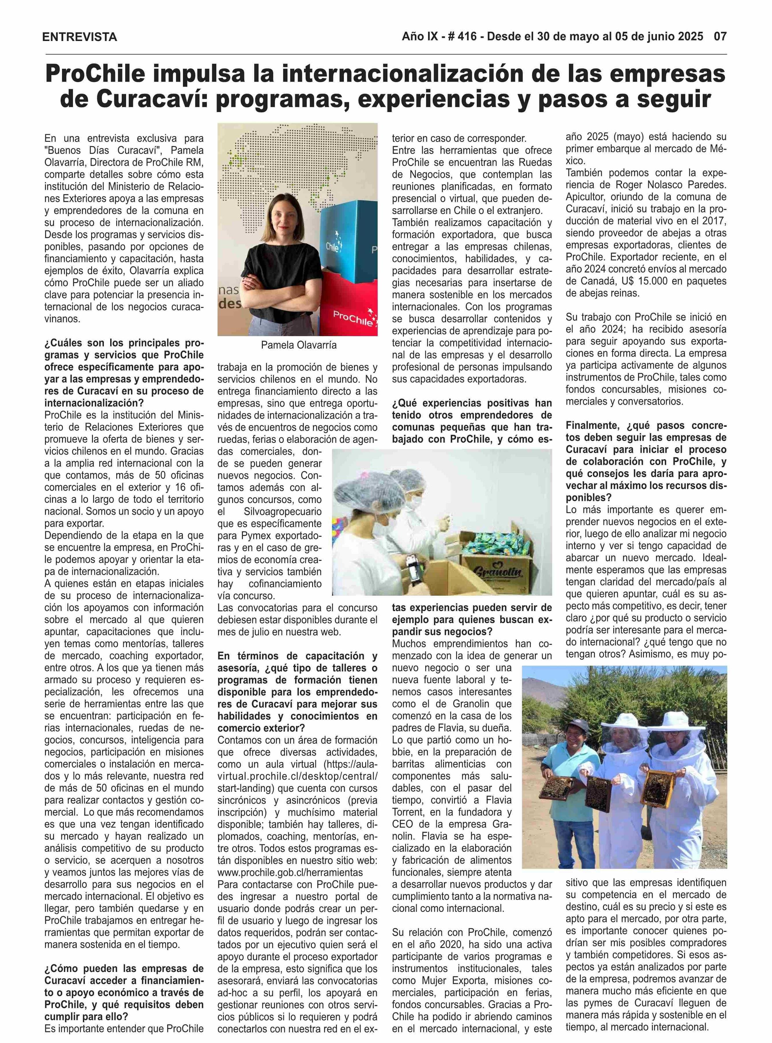 ProChile impulsa la internacionalización de las empresas de Curacaví: programas, experiencias y pasos a seguir 30-05-2025 Buenos Días Curacaví |