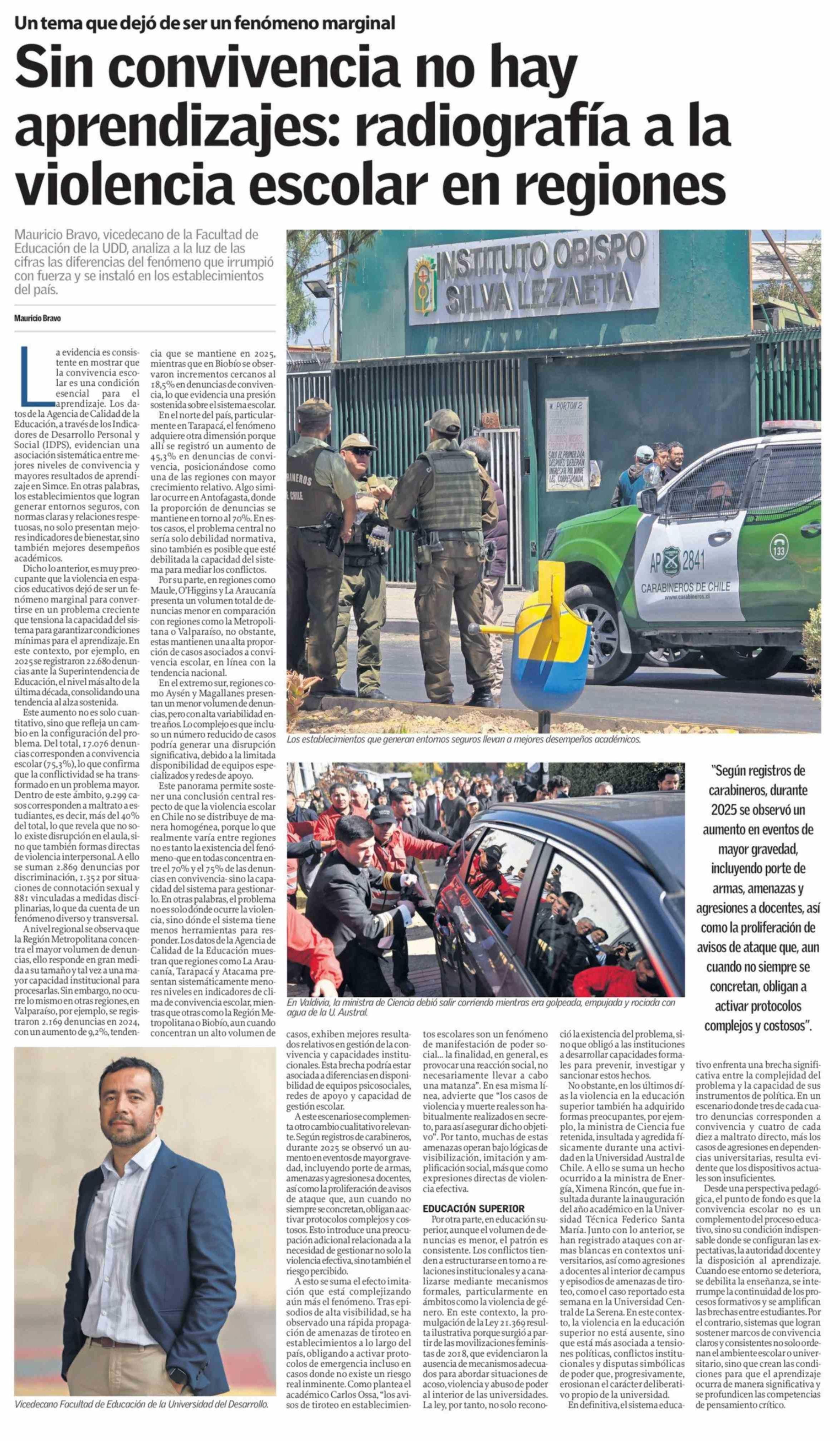 Sin convivencia no hay aprendizajes: radiografía a la violencia escolar en regiones 19-04-2026 El Sur |