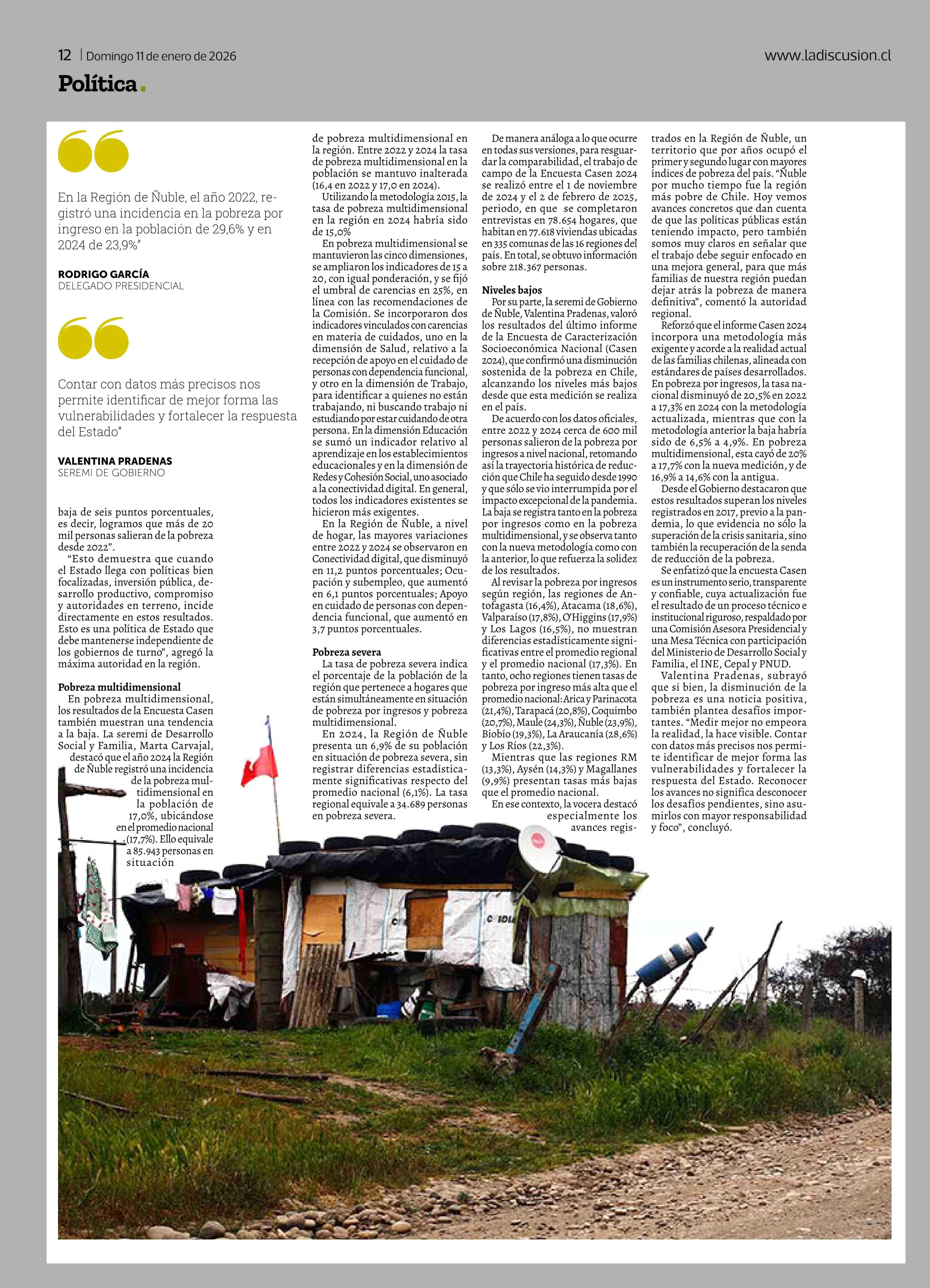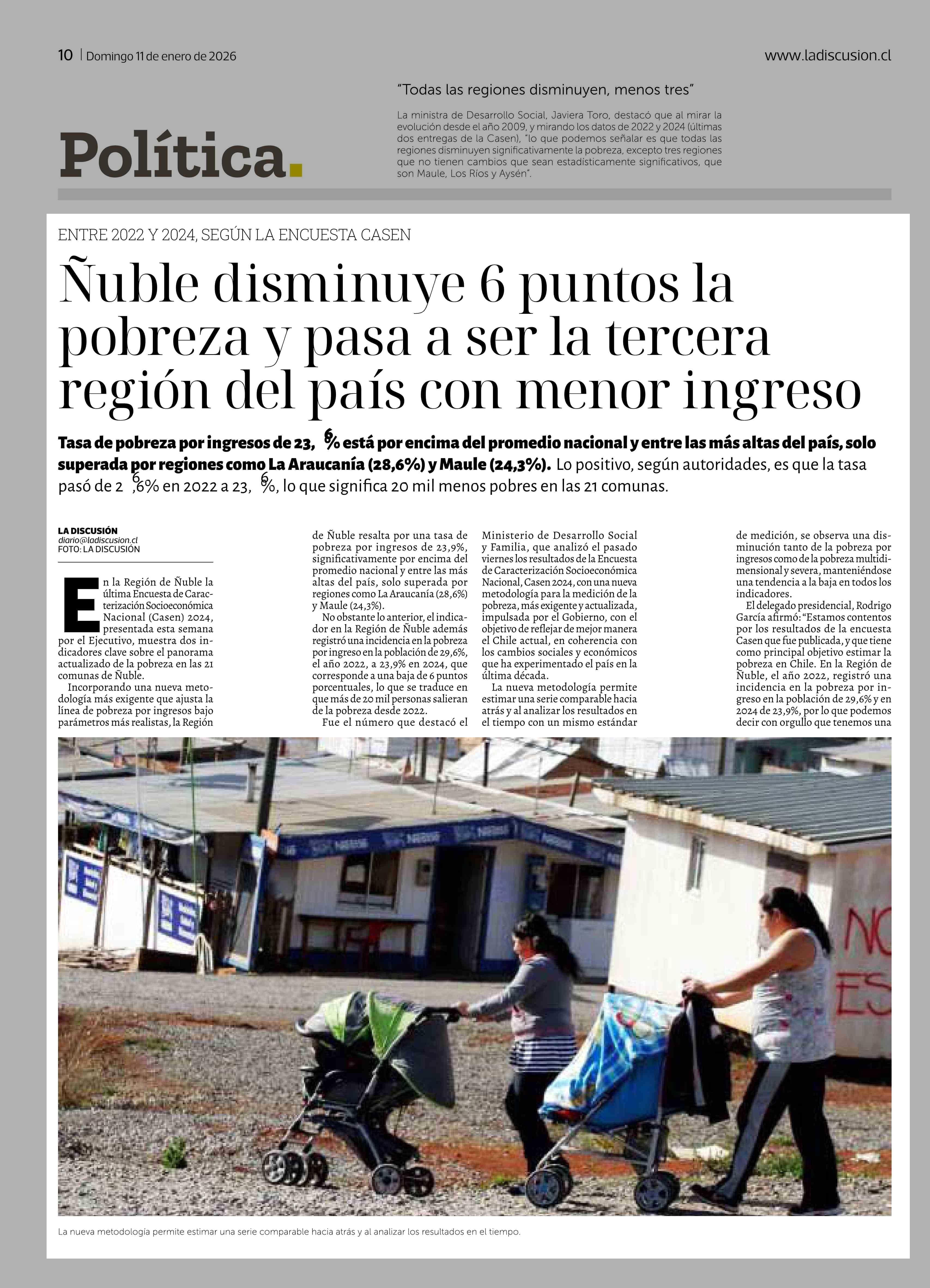 Título: Ñuble disminuye 6 puntos la pobreza y pasa a ser la tercera región del país con menor ingreso