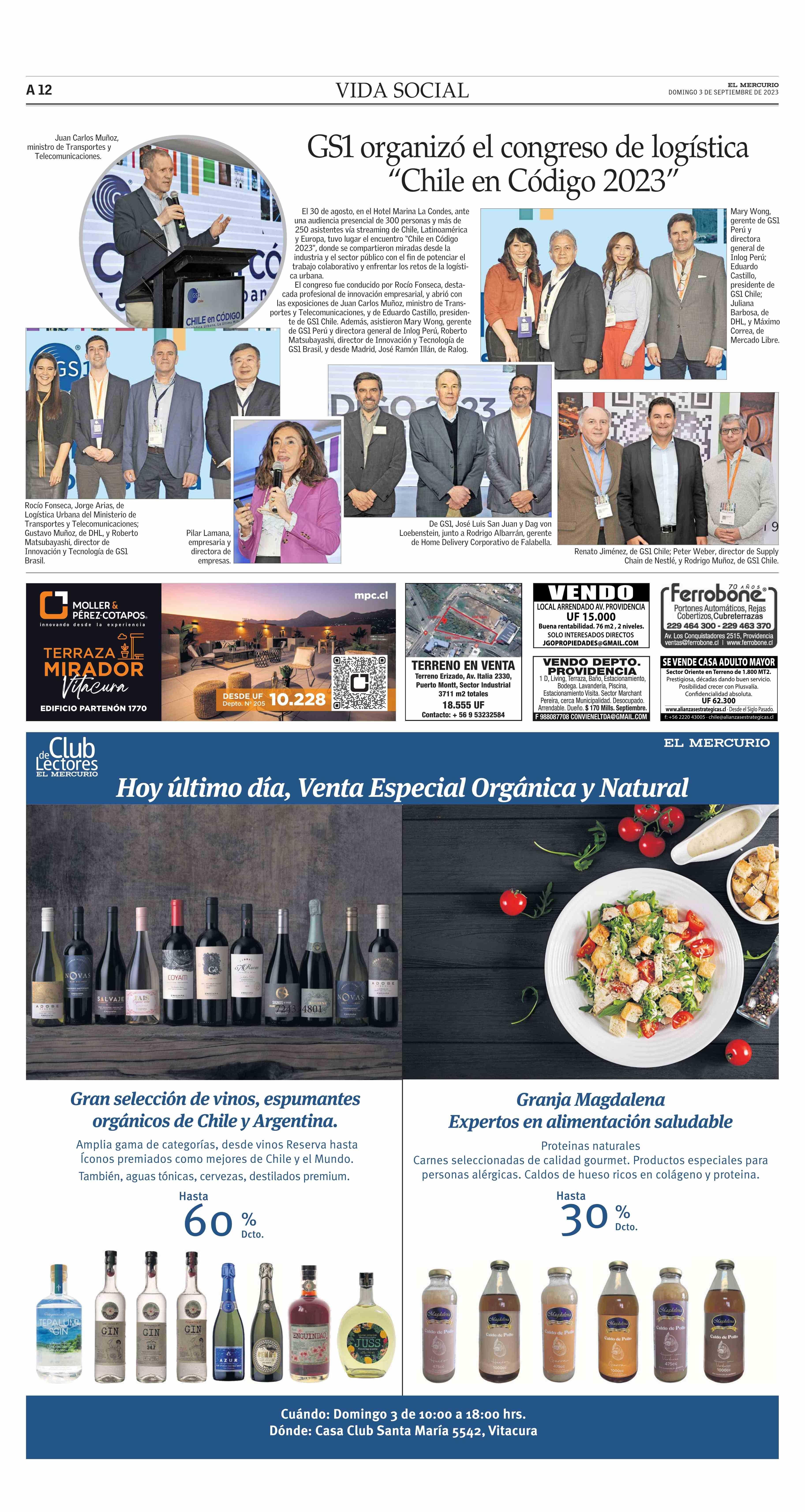 GS1 organizó el congreso de logística “Chile en Código 2023” 03-09-2023 El Mercurio |