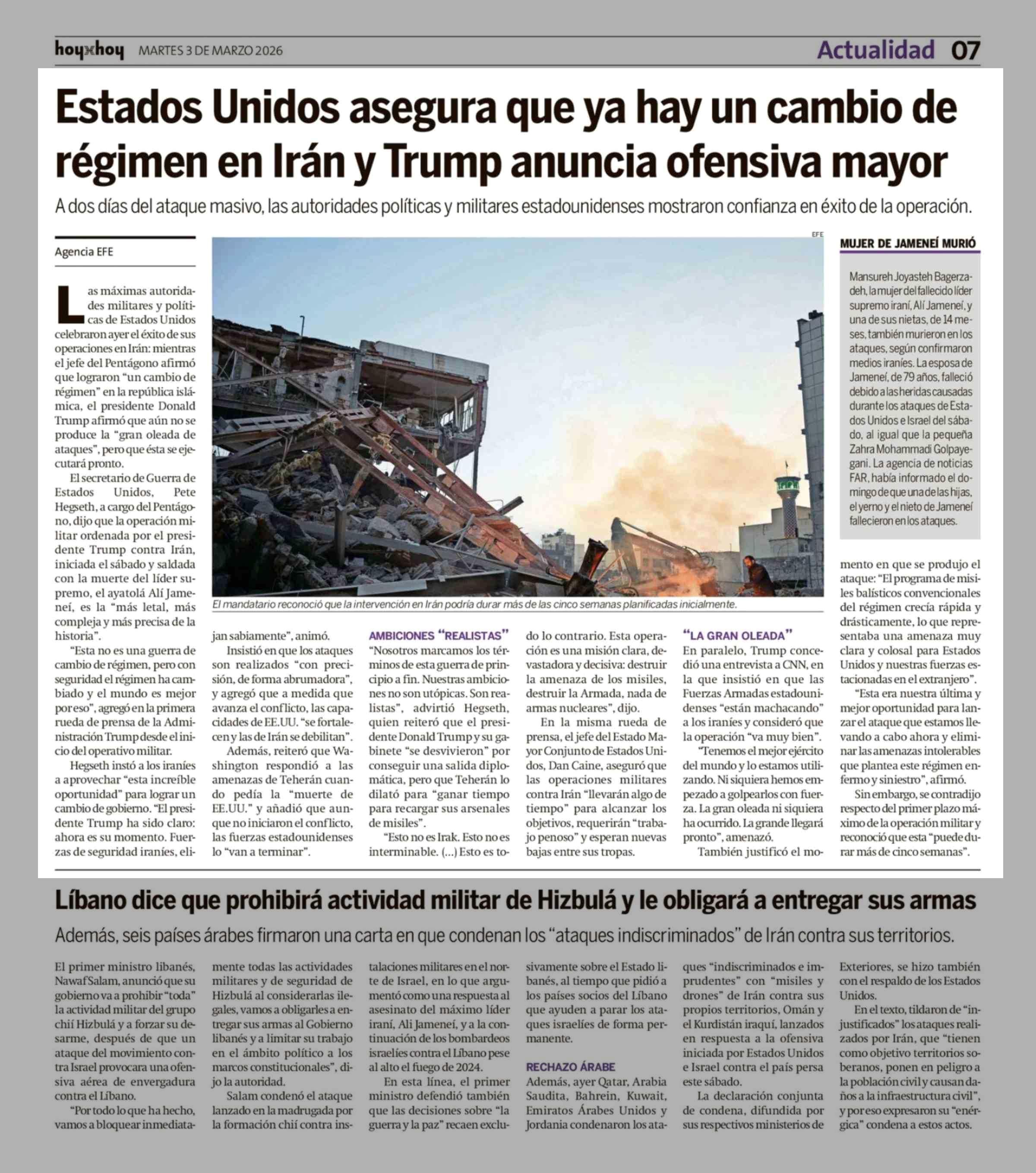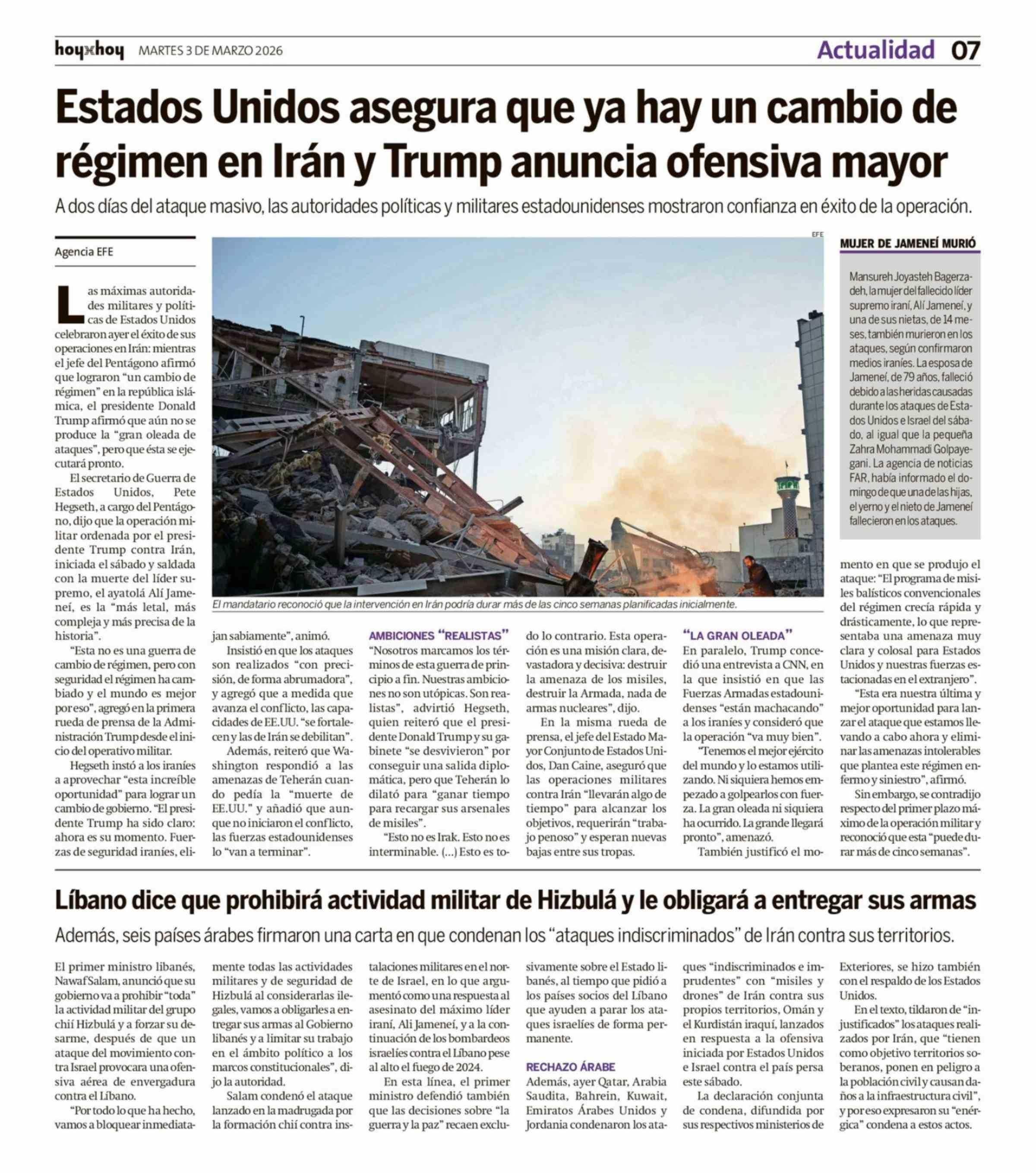 Título: Estados Unidos asegura que ya hay un cambio de régimen en Iran y Trump anuncia ofensiva mayor