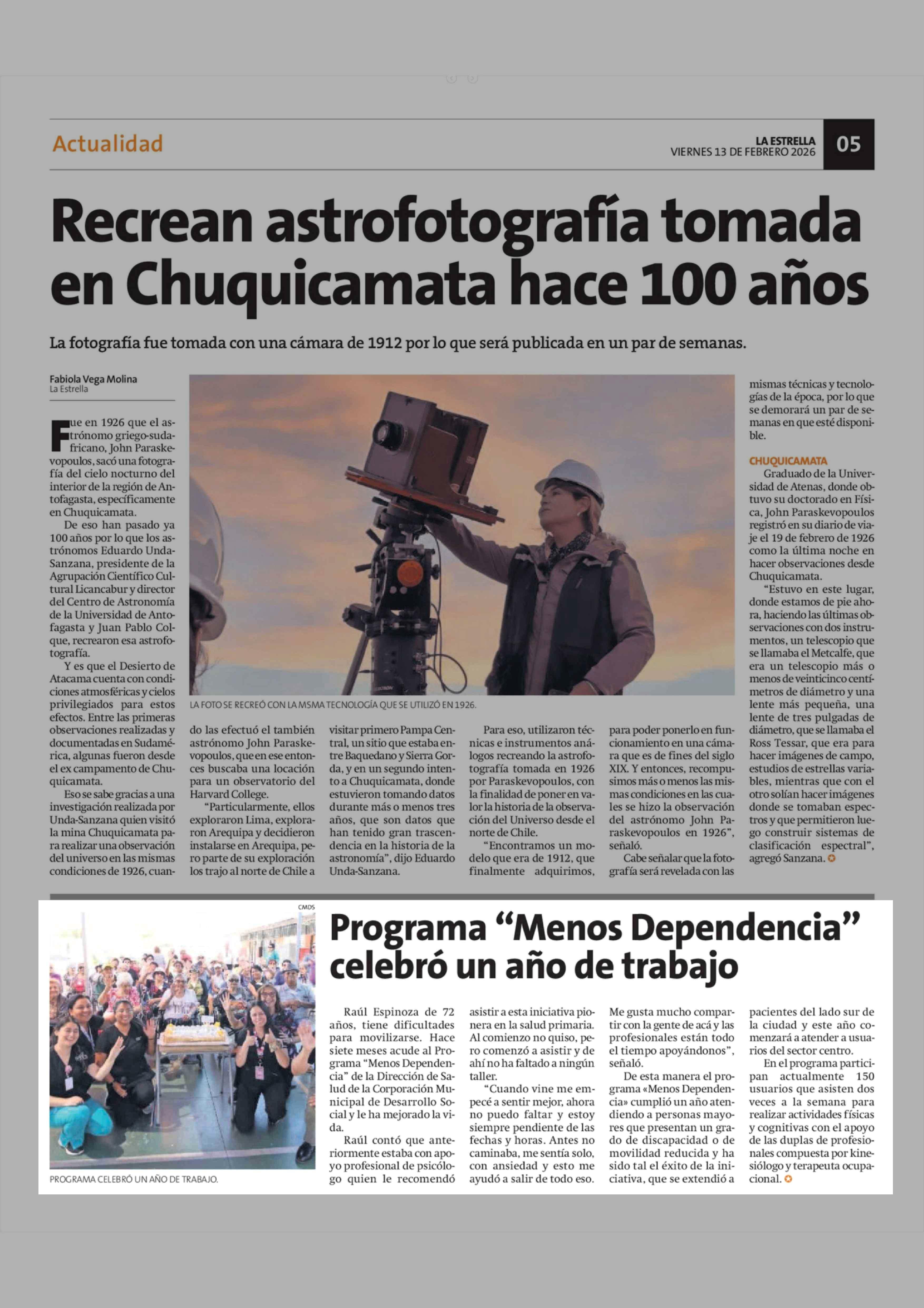Programa "Menos Dependencia" celebró un año de trabajo 13-02-2026 La Estrella de Antofagasta |