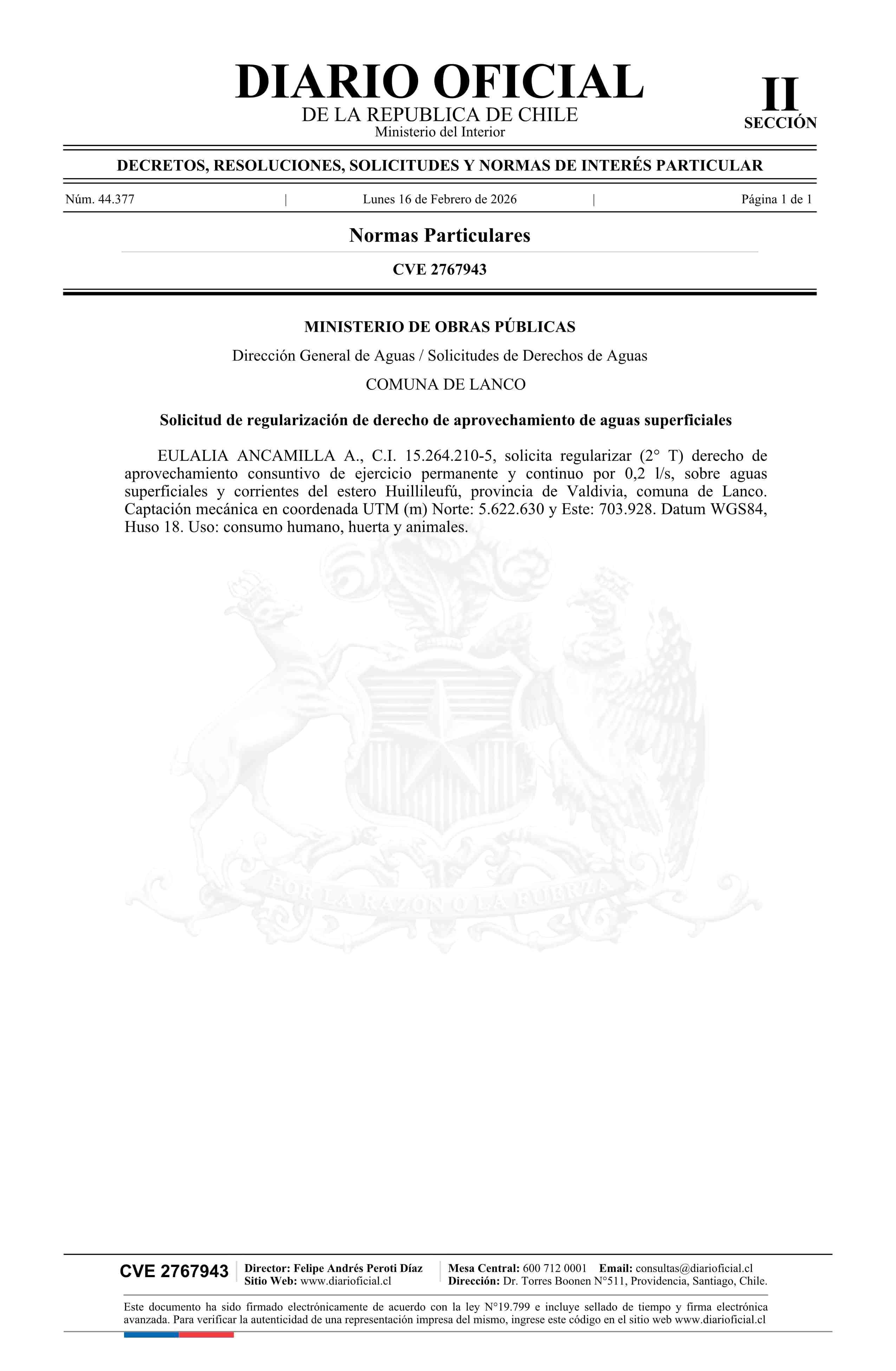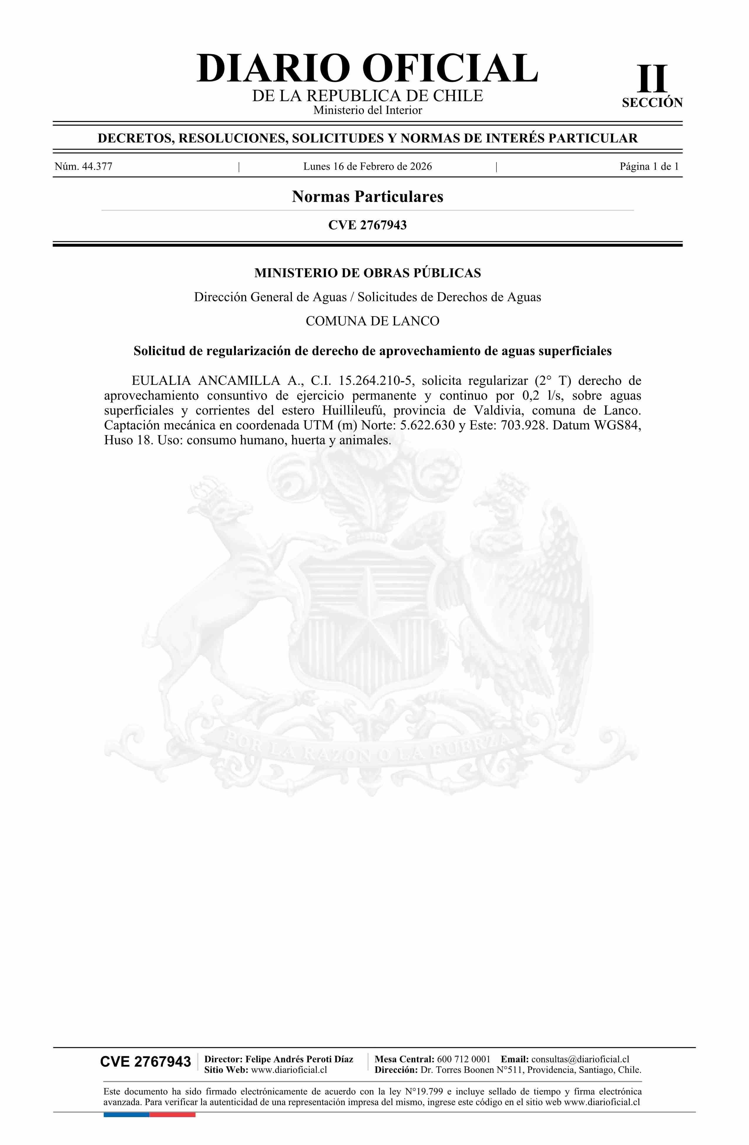 Solicitud Ancamilla A. Eulalia 16-02-2026 Diario Oficial Edición Electrónica |