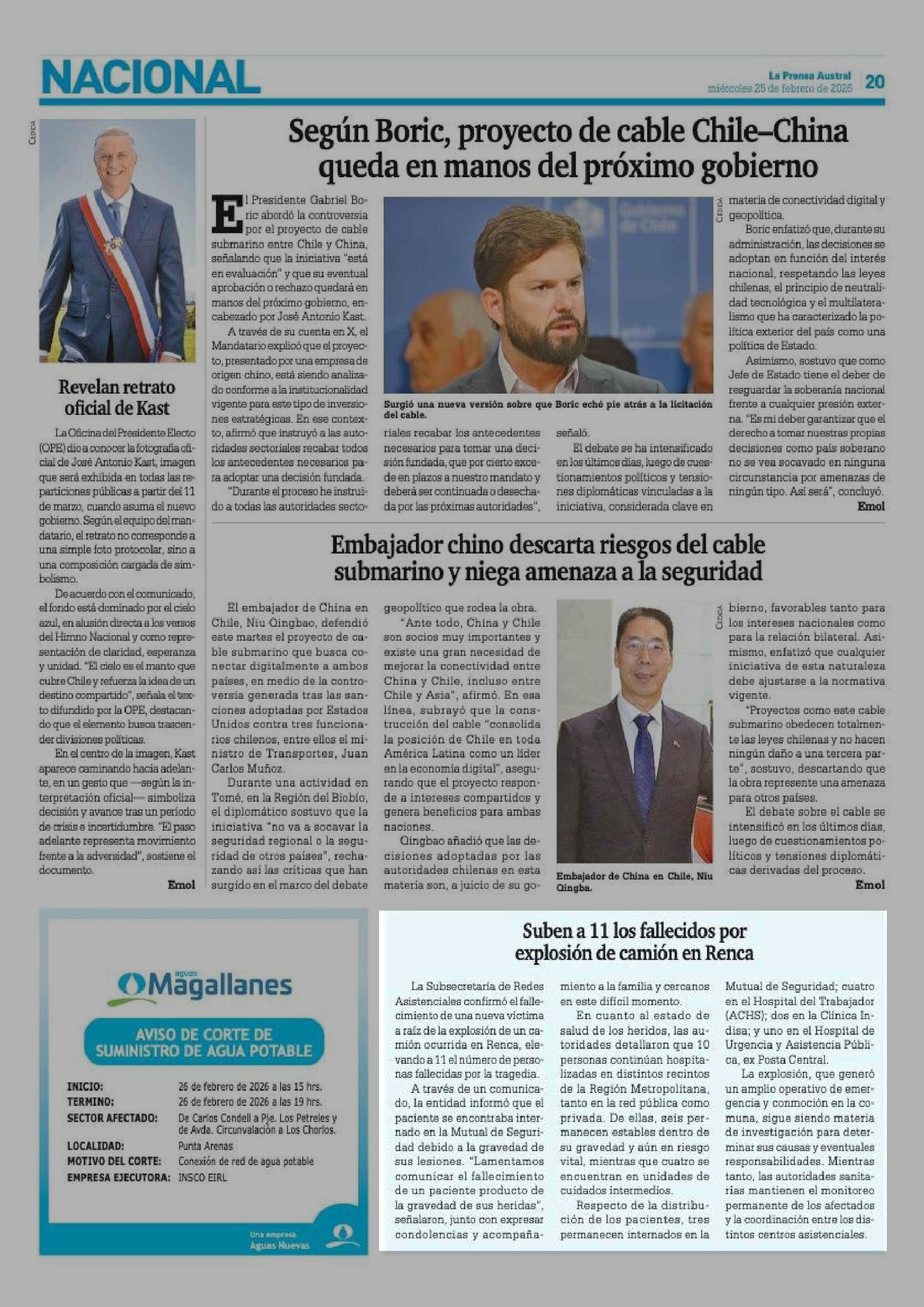 | Fecha: | 25-02-2026 | Sector: | Noticia general | Región: | Región de Magallanes y de la Antártica Chilena |