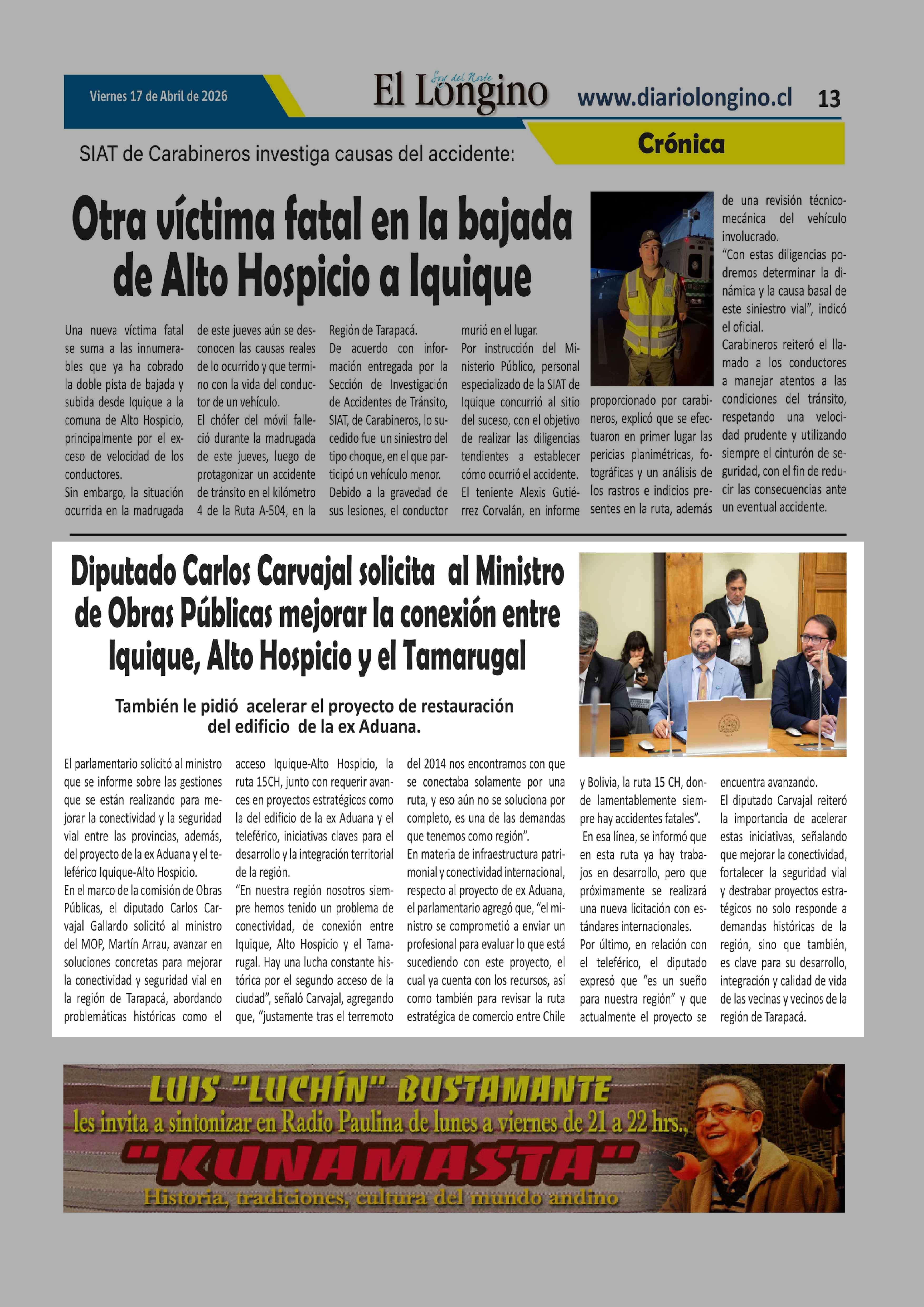 Fecha: 17-04-2026 Sector: Noticia general Región: Región de Tarapacá