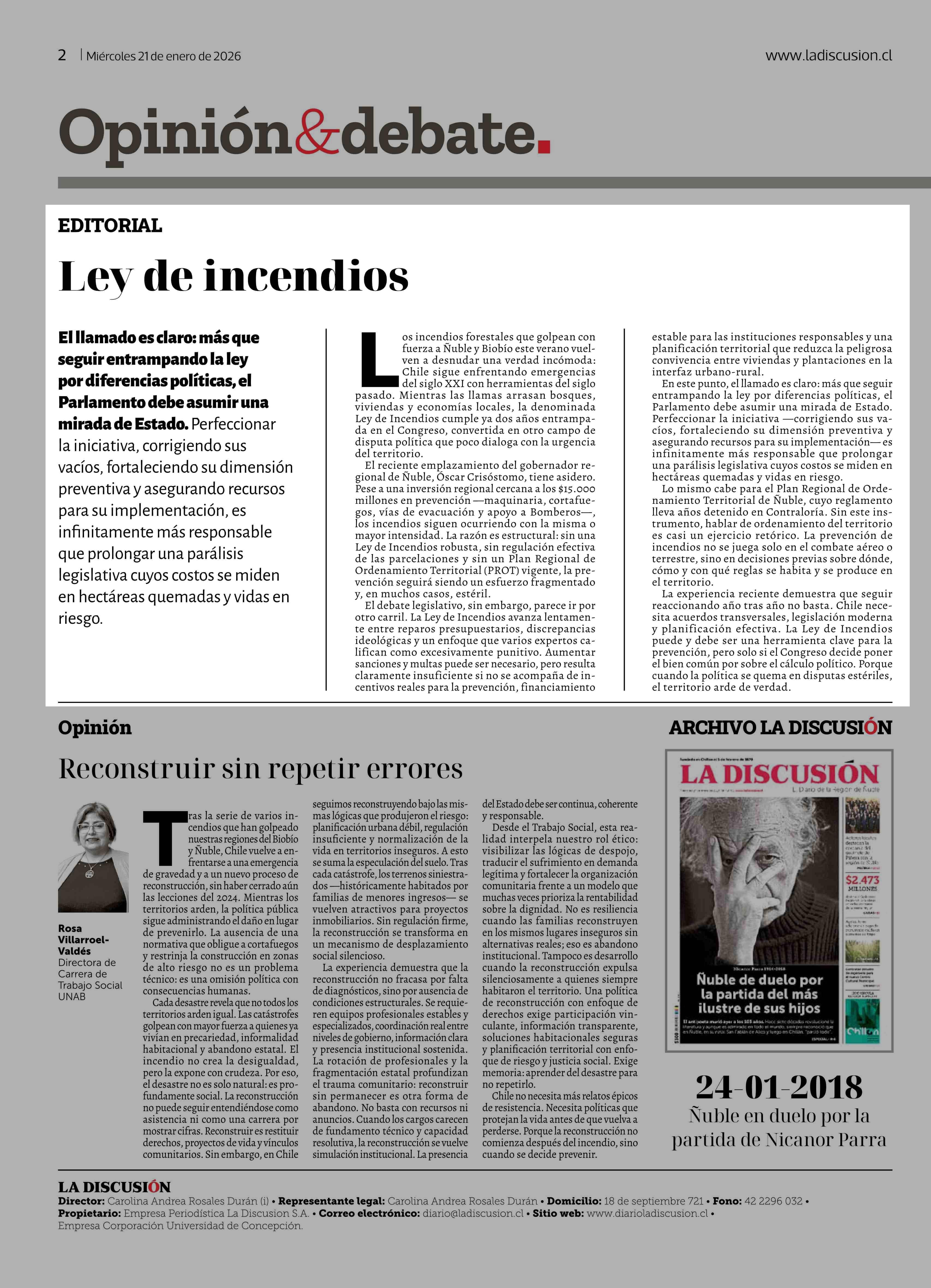 Fecha: 21-01-2026 Sector: Editorial Región: Región del Ñuble