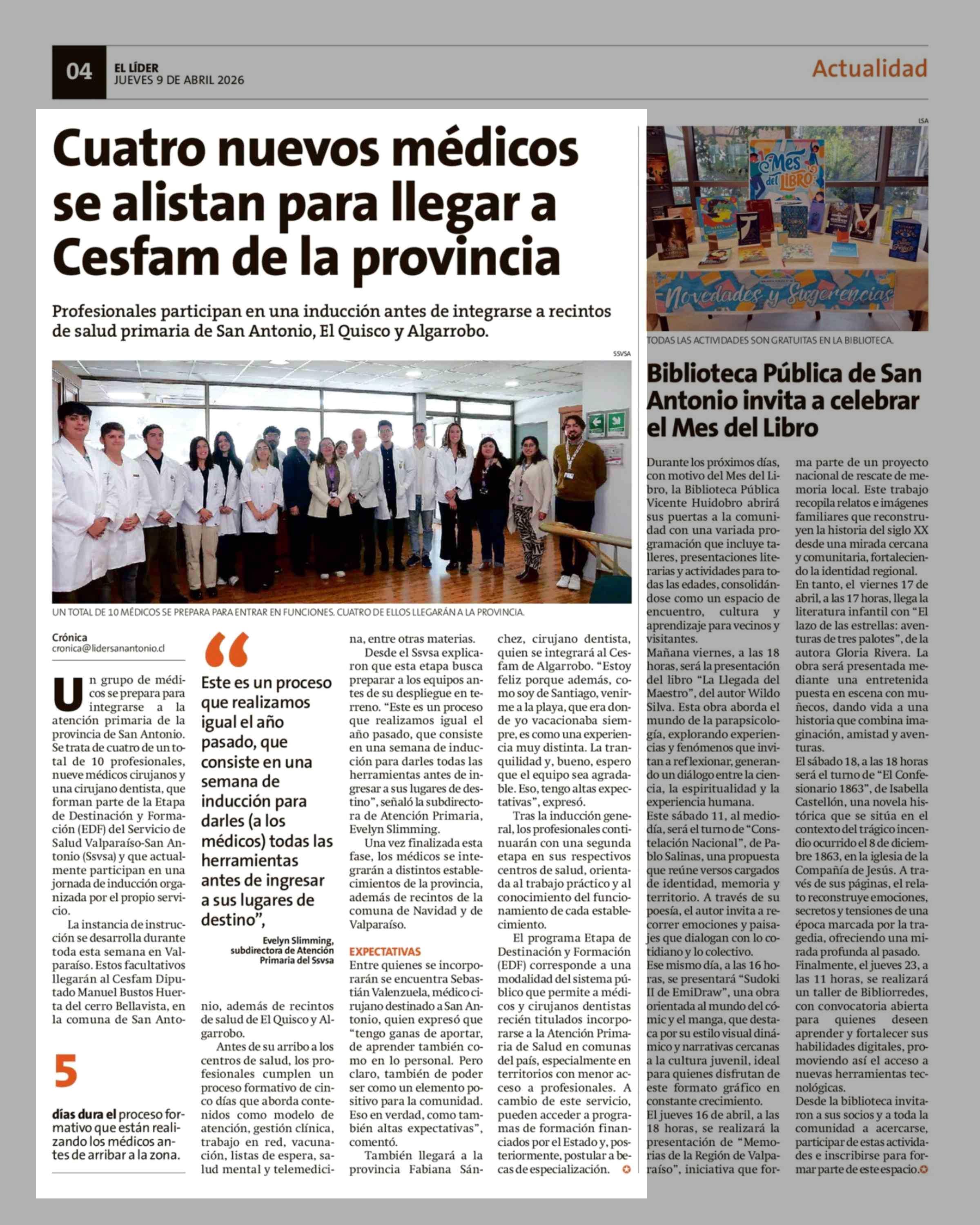Cuatro nuevos médicos se alistan para llegar a Cesfam de la provincia 09-04-2026 El Líder |