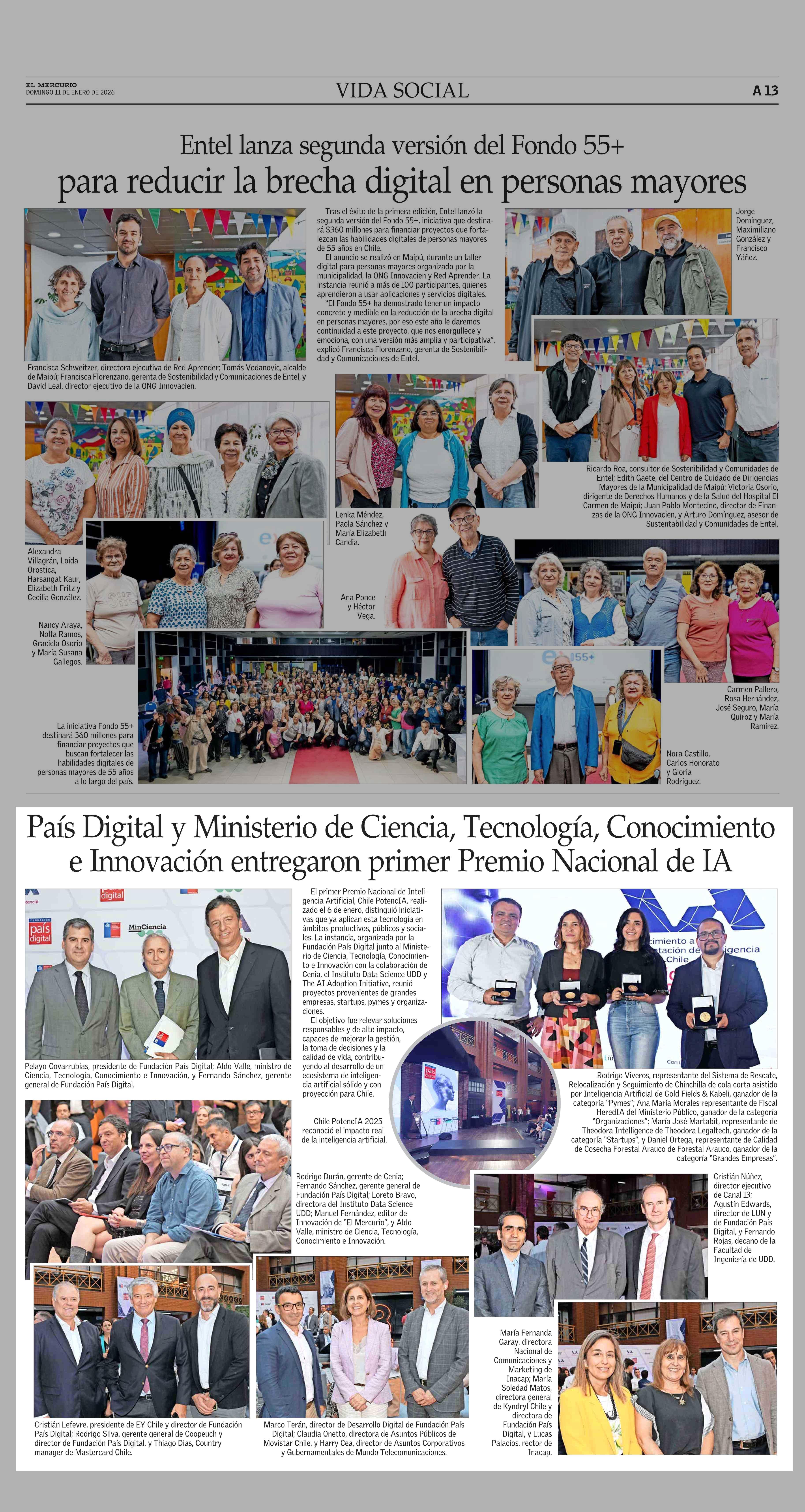 País Digital y Ministerio de Ciencia, Tecnología, Conocimiento e Innovación entregaron primer Premio Nacional de IA 11-01-2026 El Mercurio |