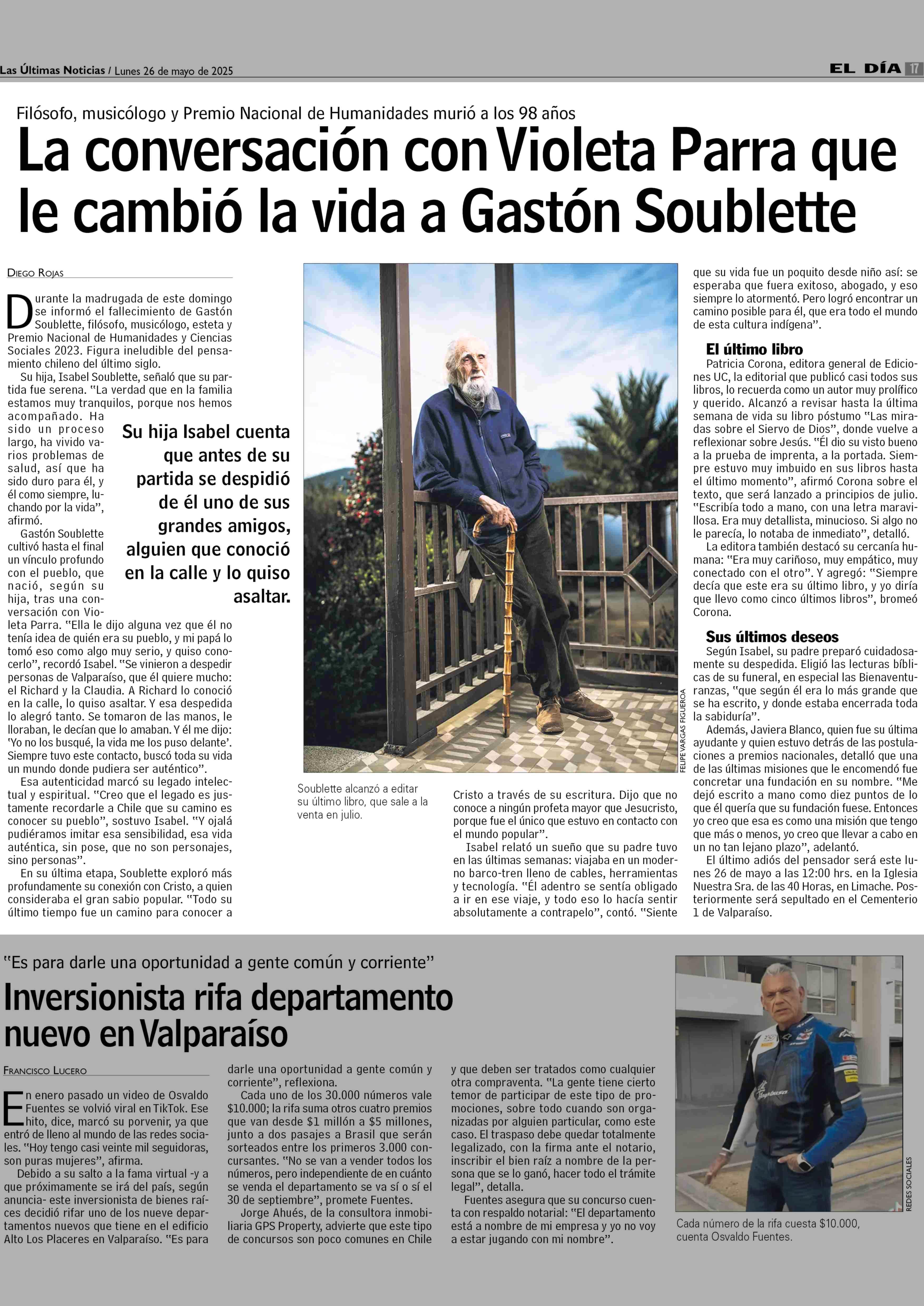 La conversación con Violeta Parra que le cambió la vida a Gastón Soublette 26-05-2025 Las Últimas Noticias |