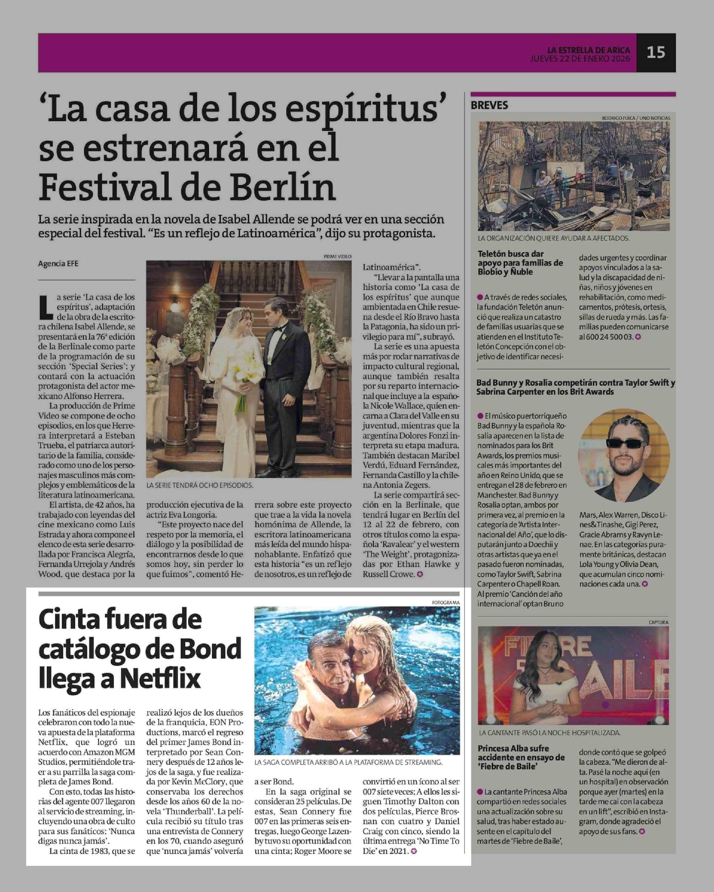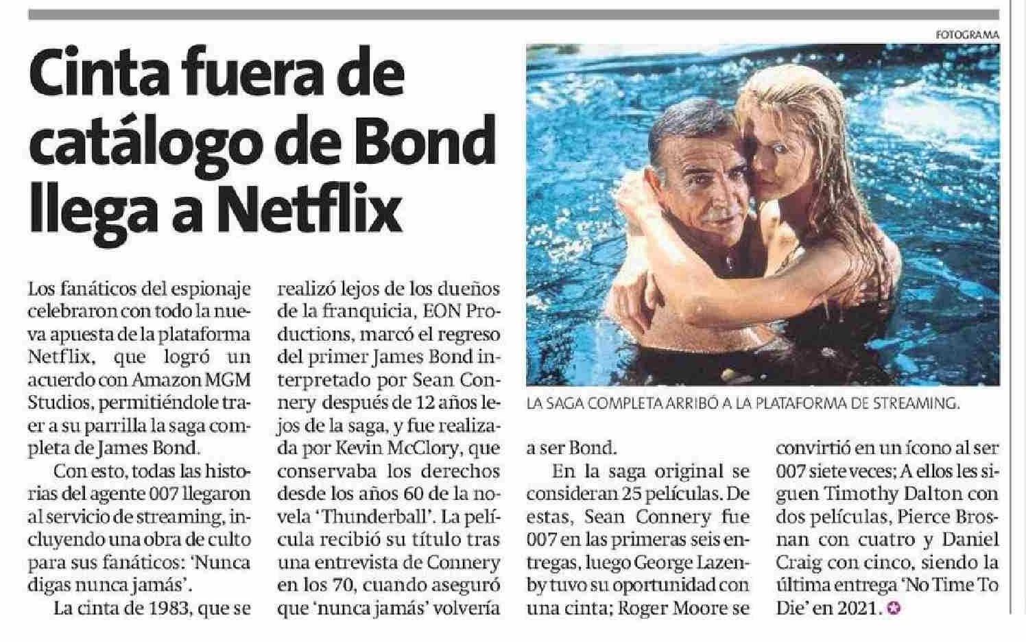Cinta fuera de catálogo de Bond llega a Netflix 22-01-2026 La Estrella de Arica |