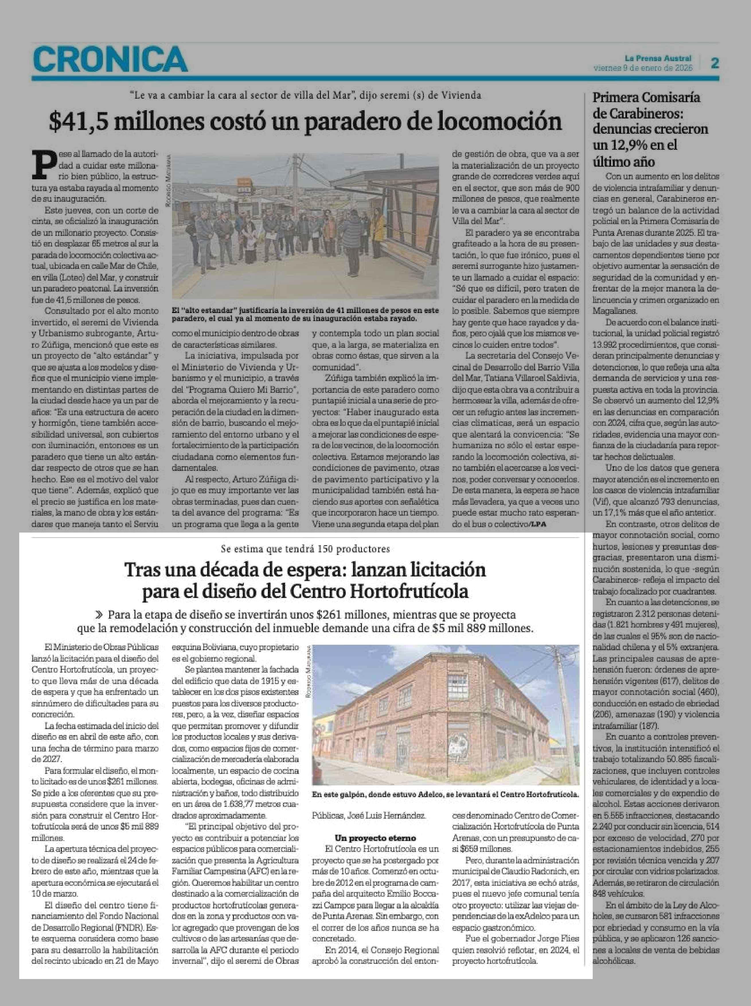 Tras una década de espera: lanzan licitación para el diseño del Centro Hortofrutícola 09-01-2026 La Prensa Austral |