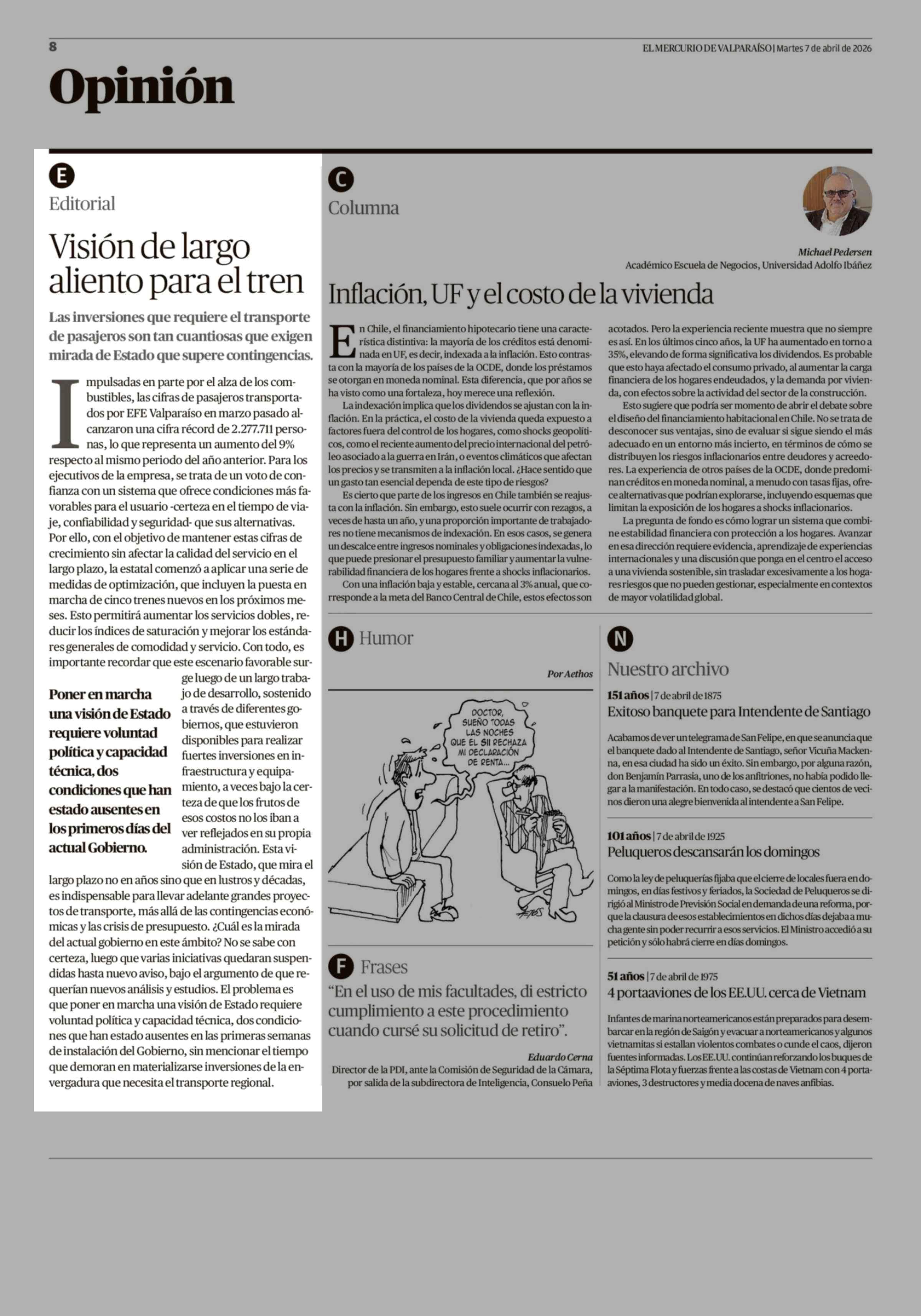 Editorial: Visión de largo aliento para el tren 07-04-2026 El Mercurio de Valparaíso |