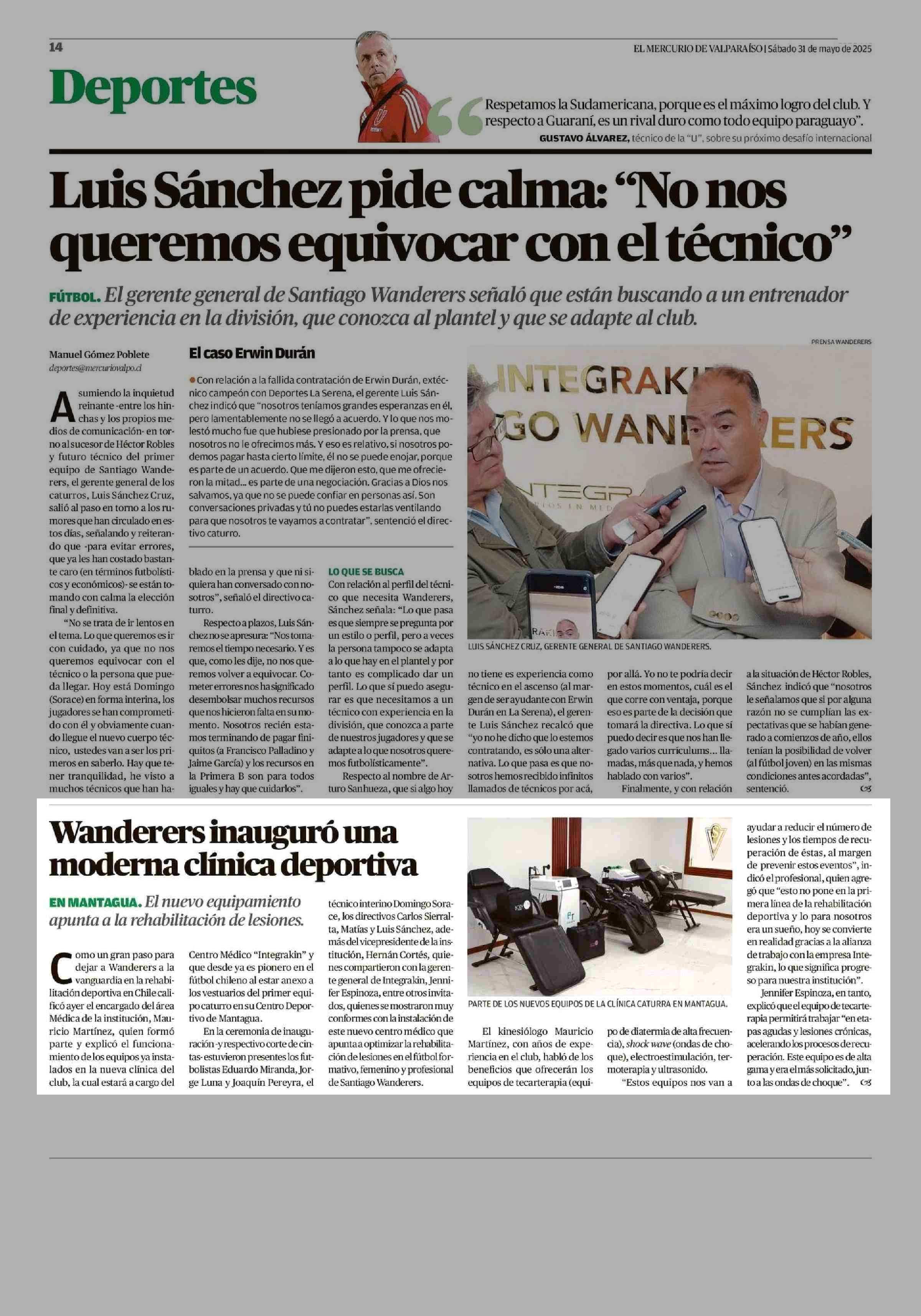 Wanderers inauguró una moderna clínica deportiva 31-05-2025 El Mercurio de Valparaíso |