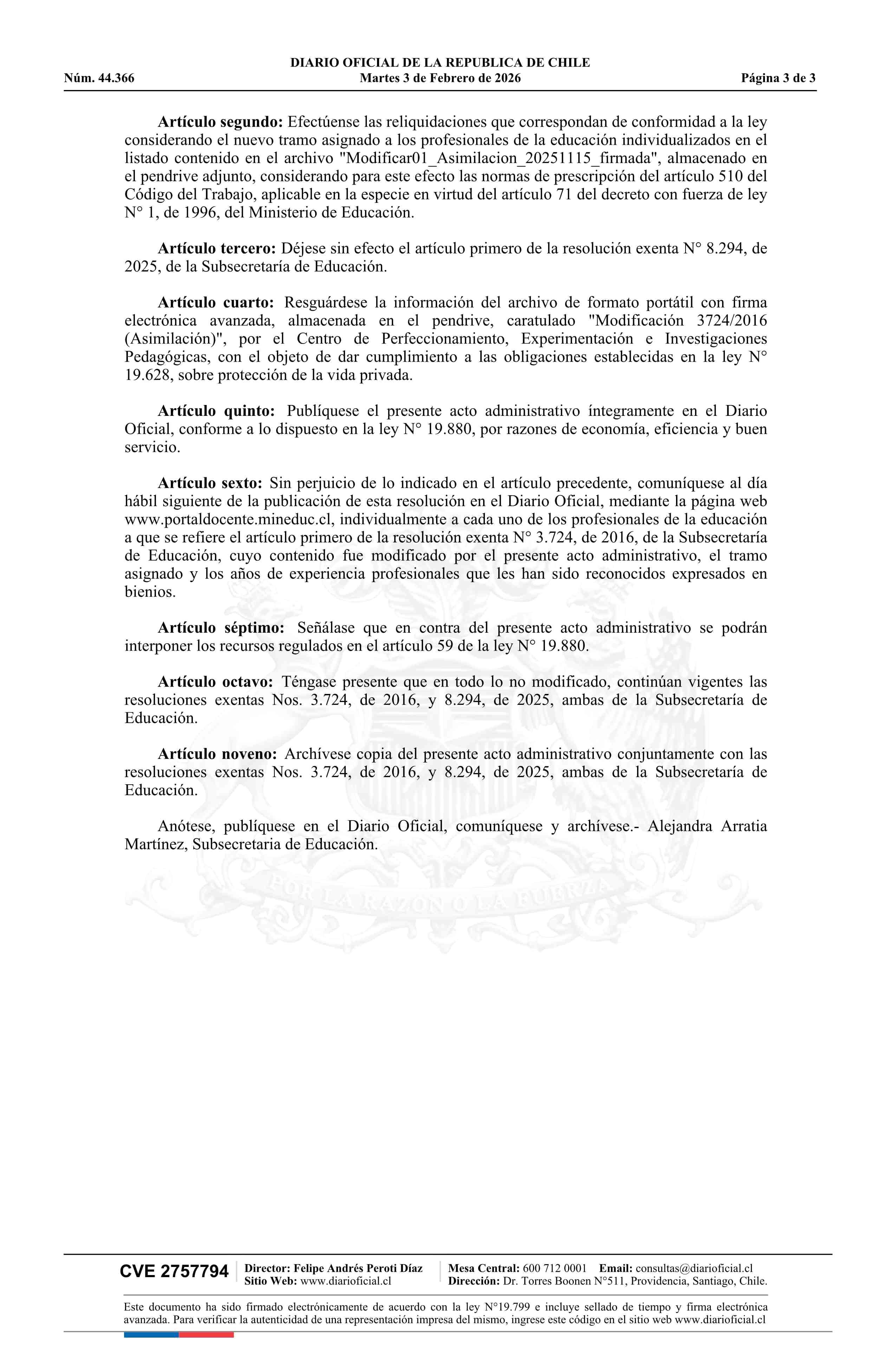 Título: Resolución exenta número 153, de 2026.- Actualiza el listado contenido en la resolución N° 3.724 exenta, de 2016, ordenando las reliquidaciones que indica y deja sin efecto parcialmente la resolución N° 8.294 exenta, de 2025