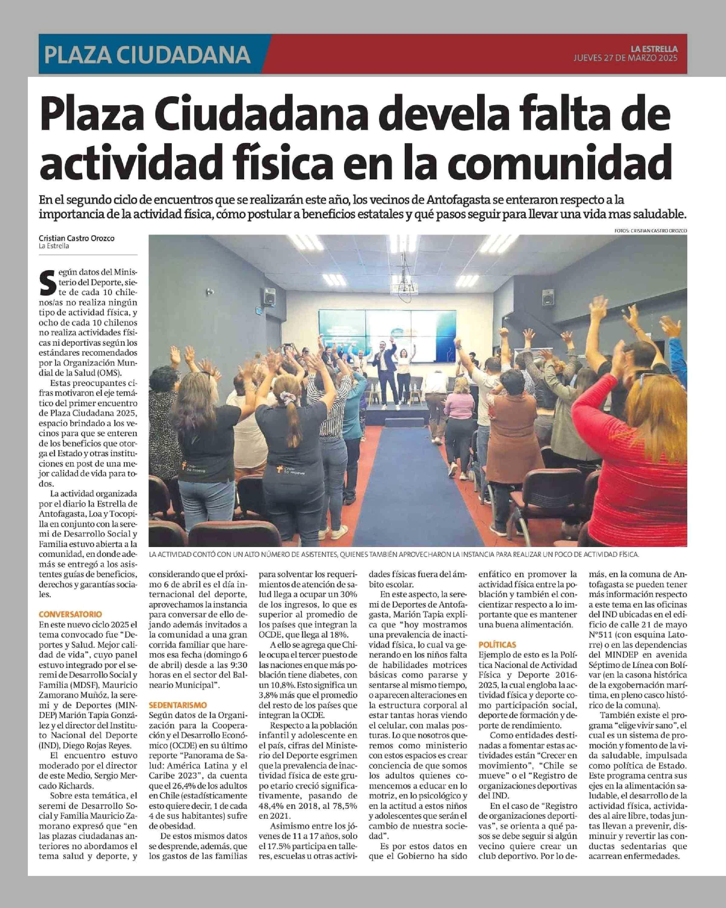 Plaza Ciudadana devela falta de actividad física en la comunidad 27-03-2025 La Estrella de Tocopilla |