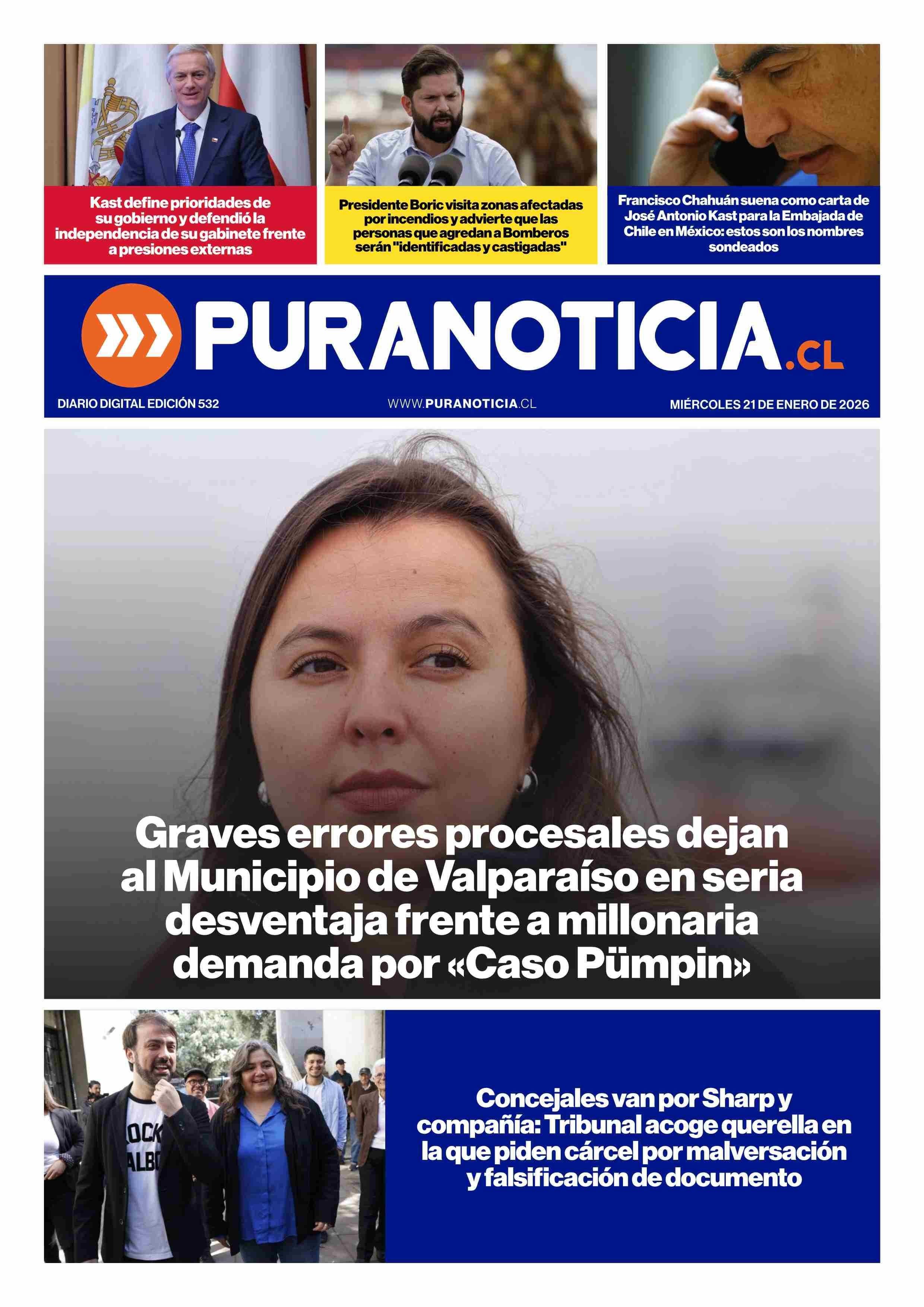 PORTADA PURANOTICIA - CHILE 21-01-2026 Puranoticia.cl |