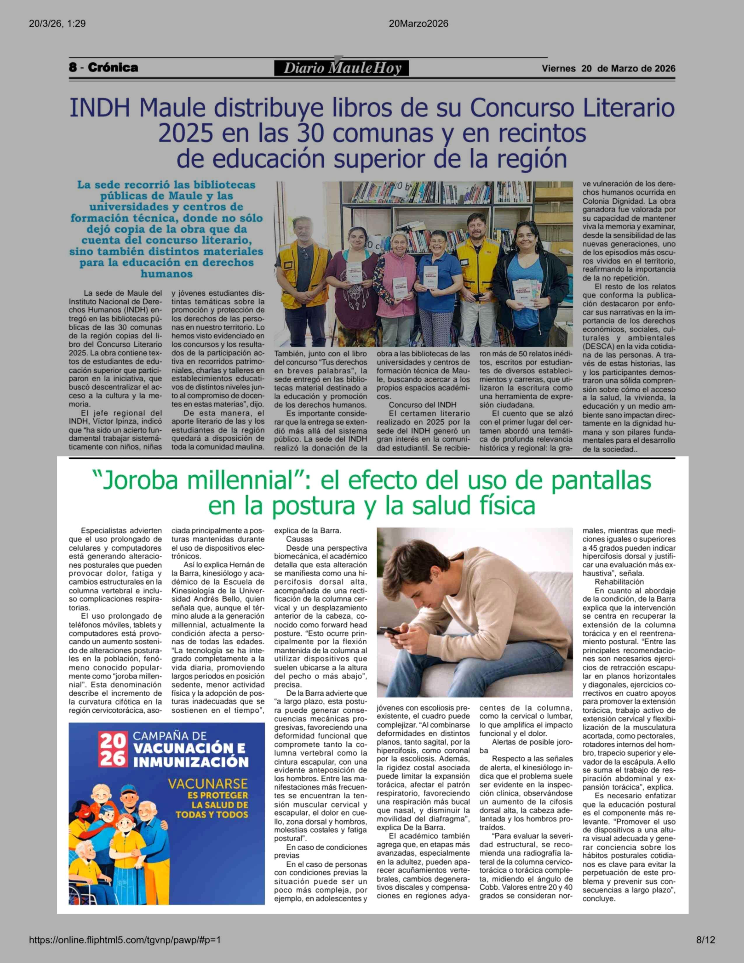 "Joroba millennial": el efecto del uso de pantallas en la postura y la salud física 20-03-2026 Maule Hoy |