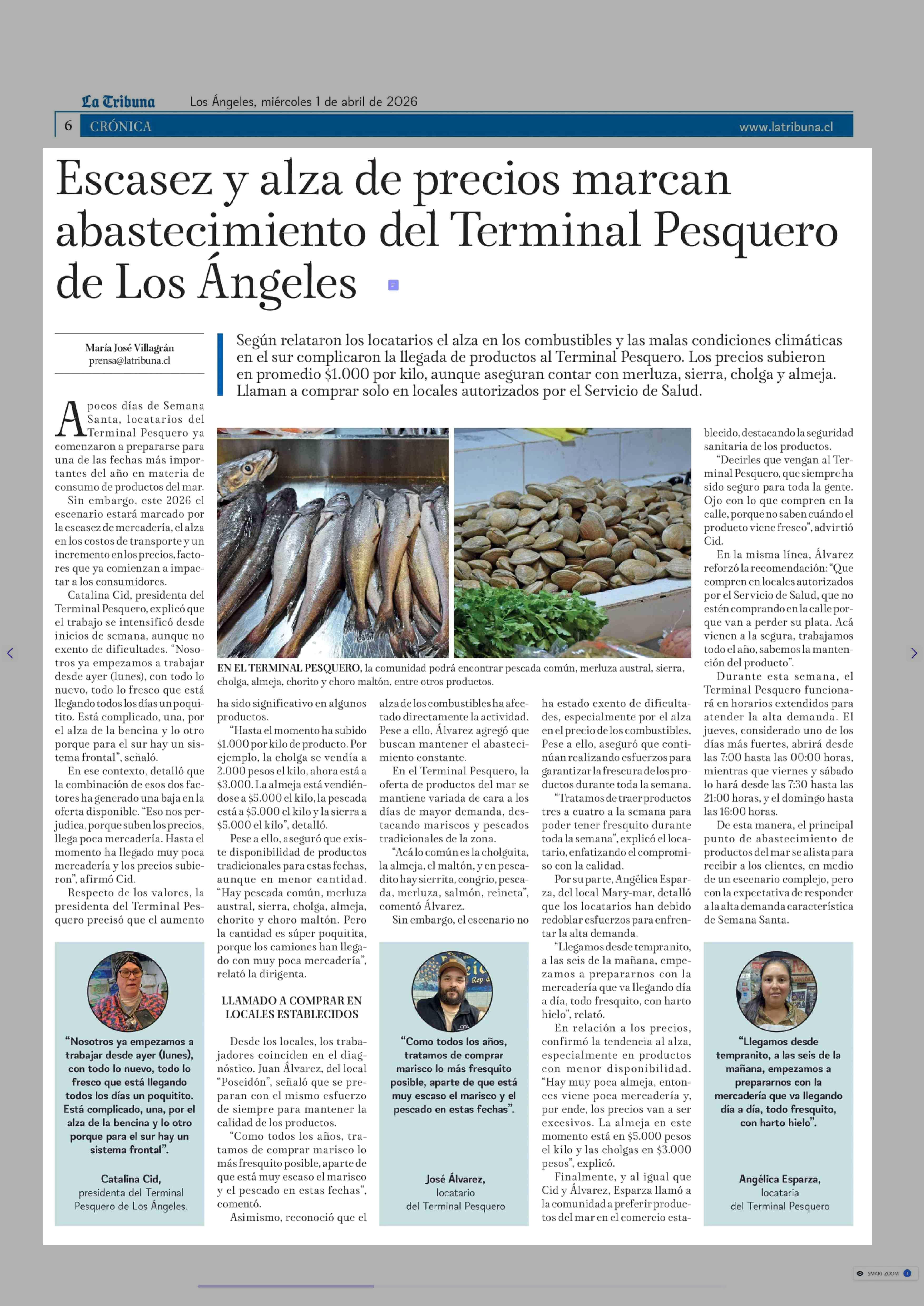 Título: Escasez y alza de precios marcan abastecimiento del Terminal Pesquero de Los Angeles