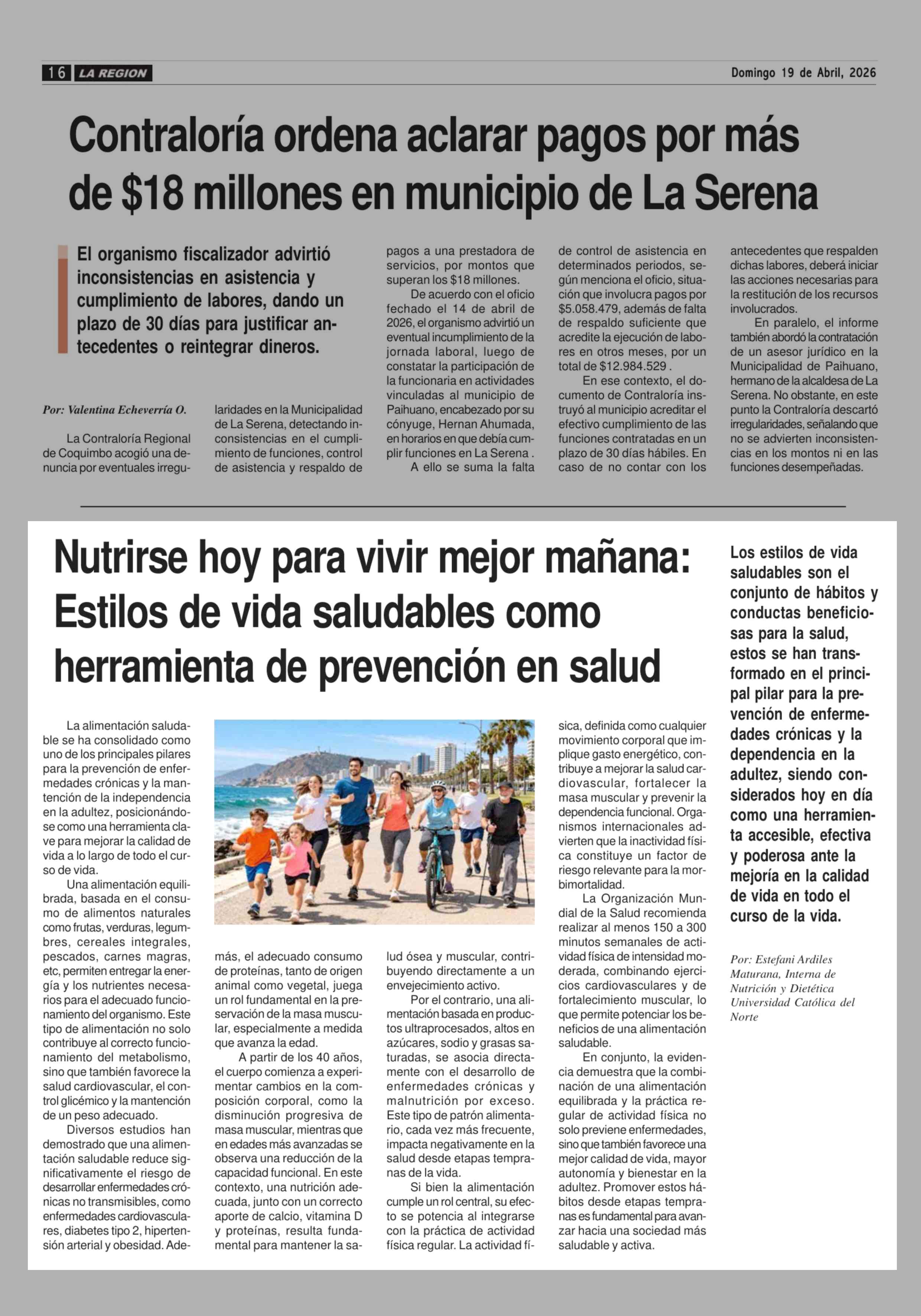 | Fecha: | 19-04-2026 | Sector: | Noticia general | Región: | Región de Coquimbo |