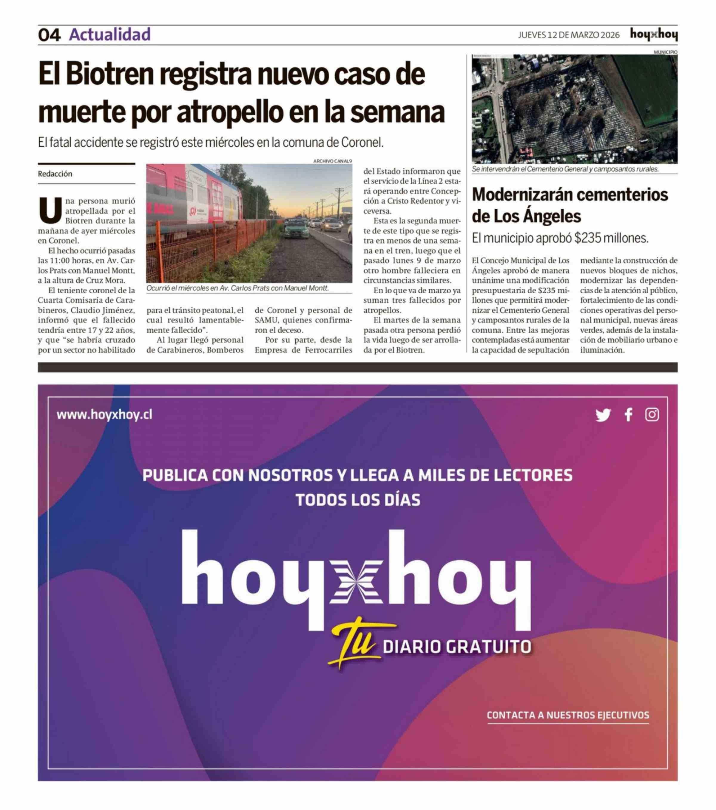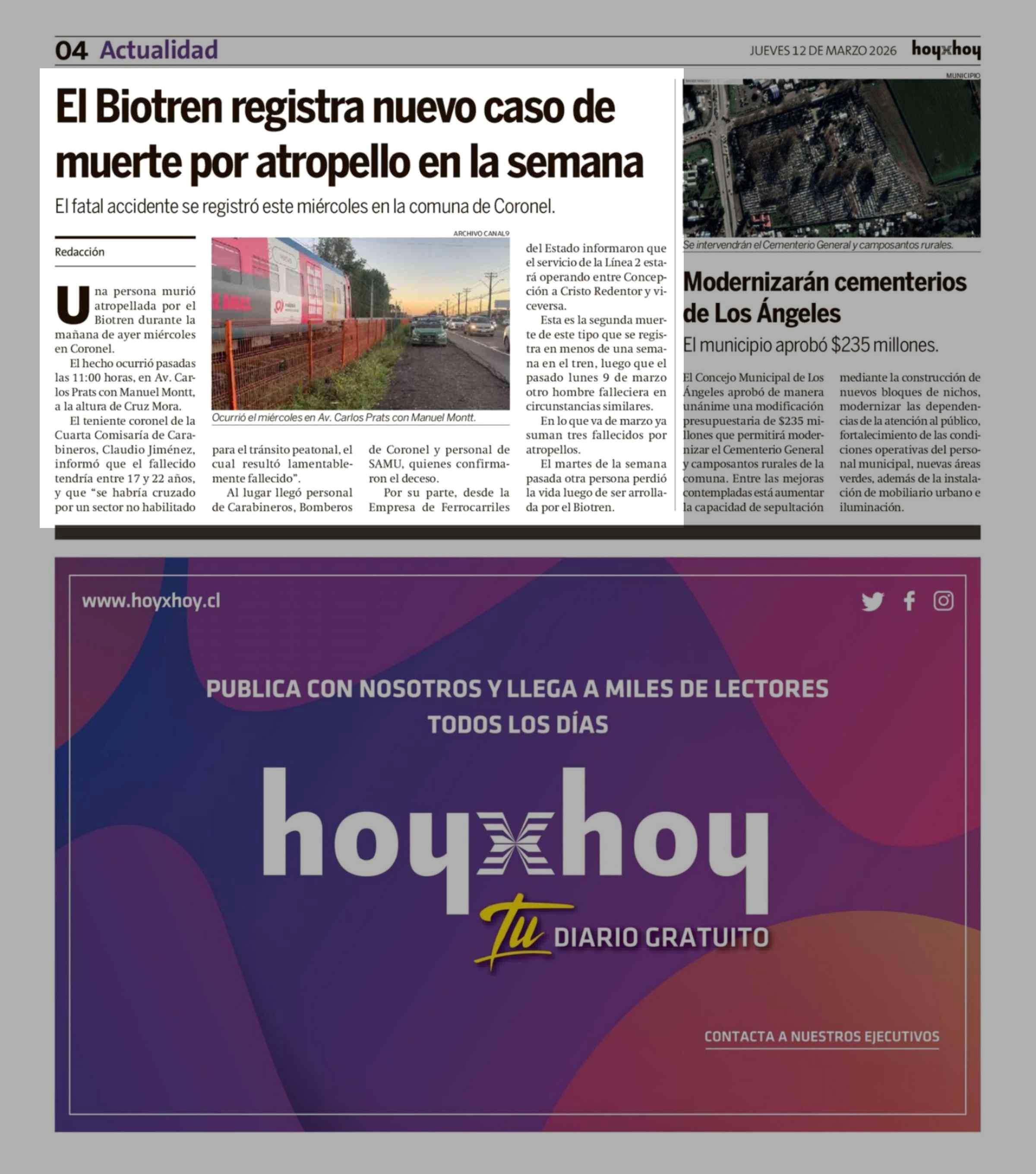 El Biotren registra nuevo caso de muerte por atropello en la semana 12-03-2026 Hoy x Hoy Concepción |