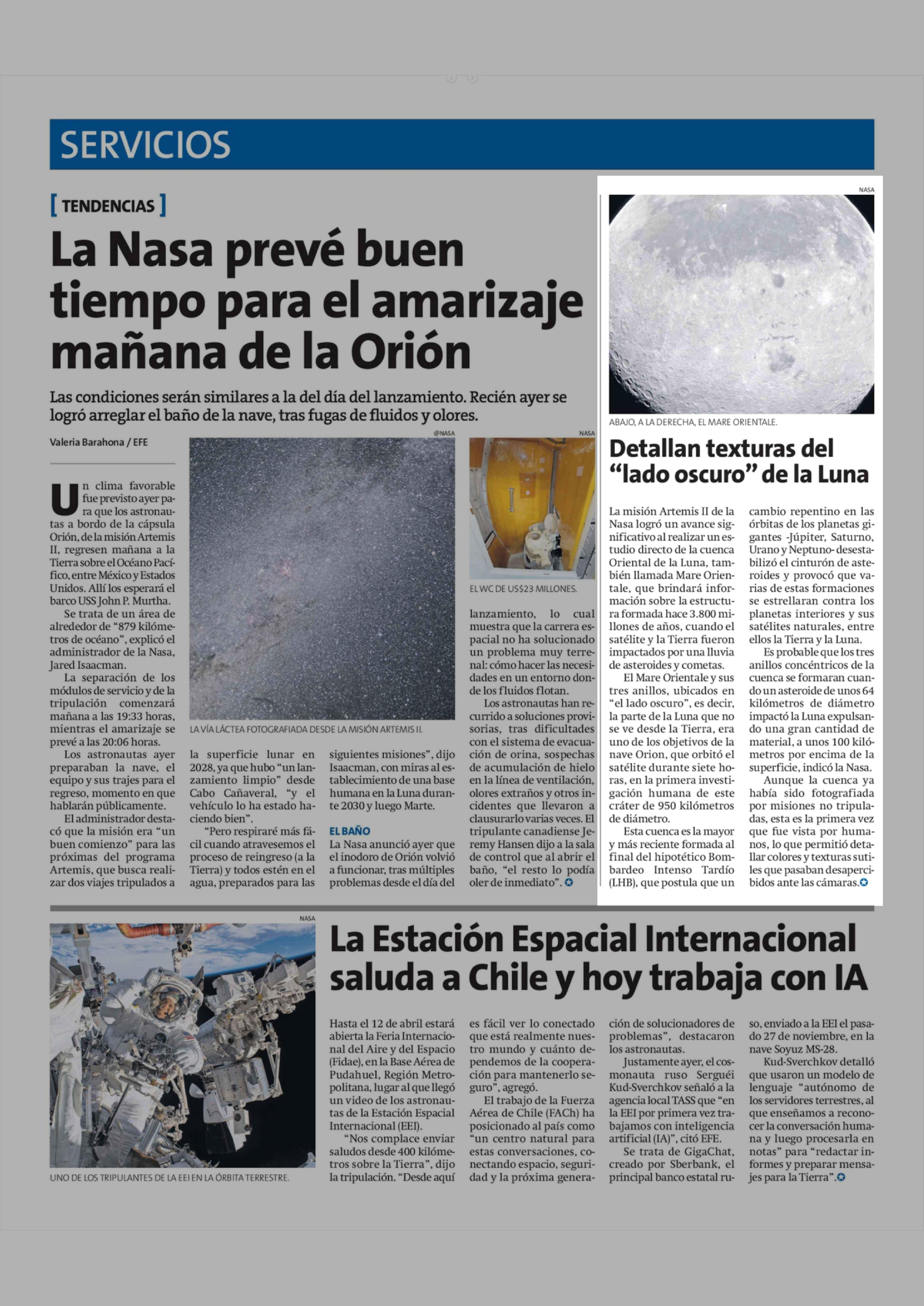 Detallan texturas del "lado oscuro" de la Luna 09-04-2026 La Estrella de Antofagasta |
