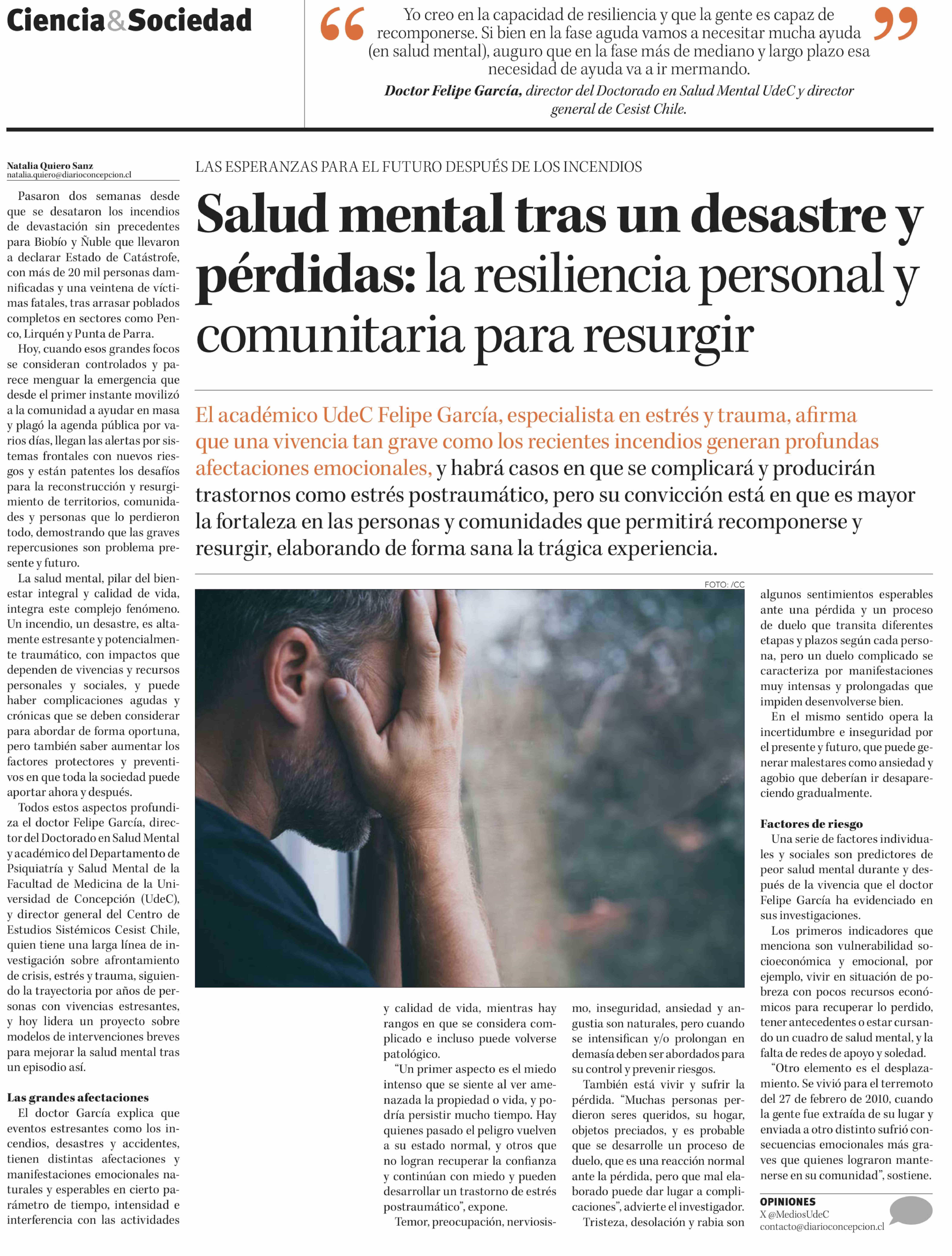 Título: Salud mental tras un desastre y pérdidas: la resiliencia personal y comunitaria para resurgir