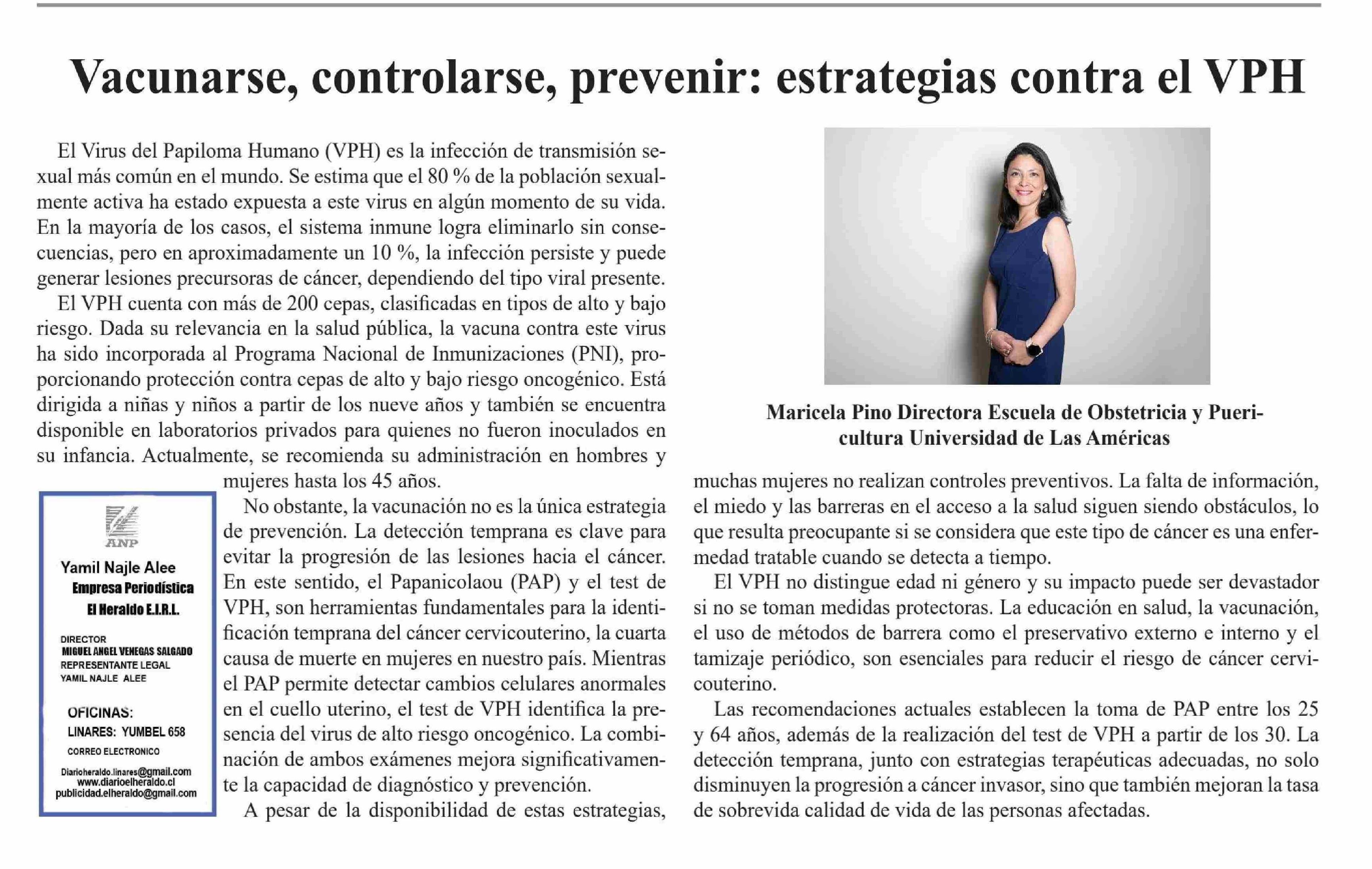 | Título: | COLUMNAS DE OPINIÓN: Vacunarse, controlarse, prevenir: estrategias contra el VPH |