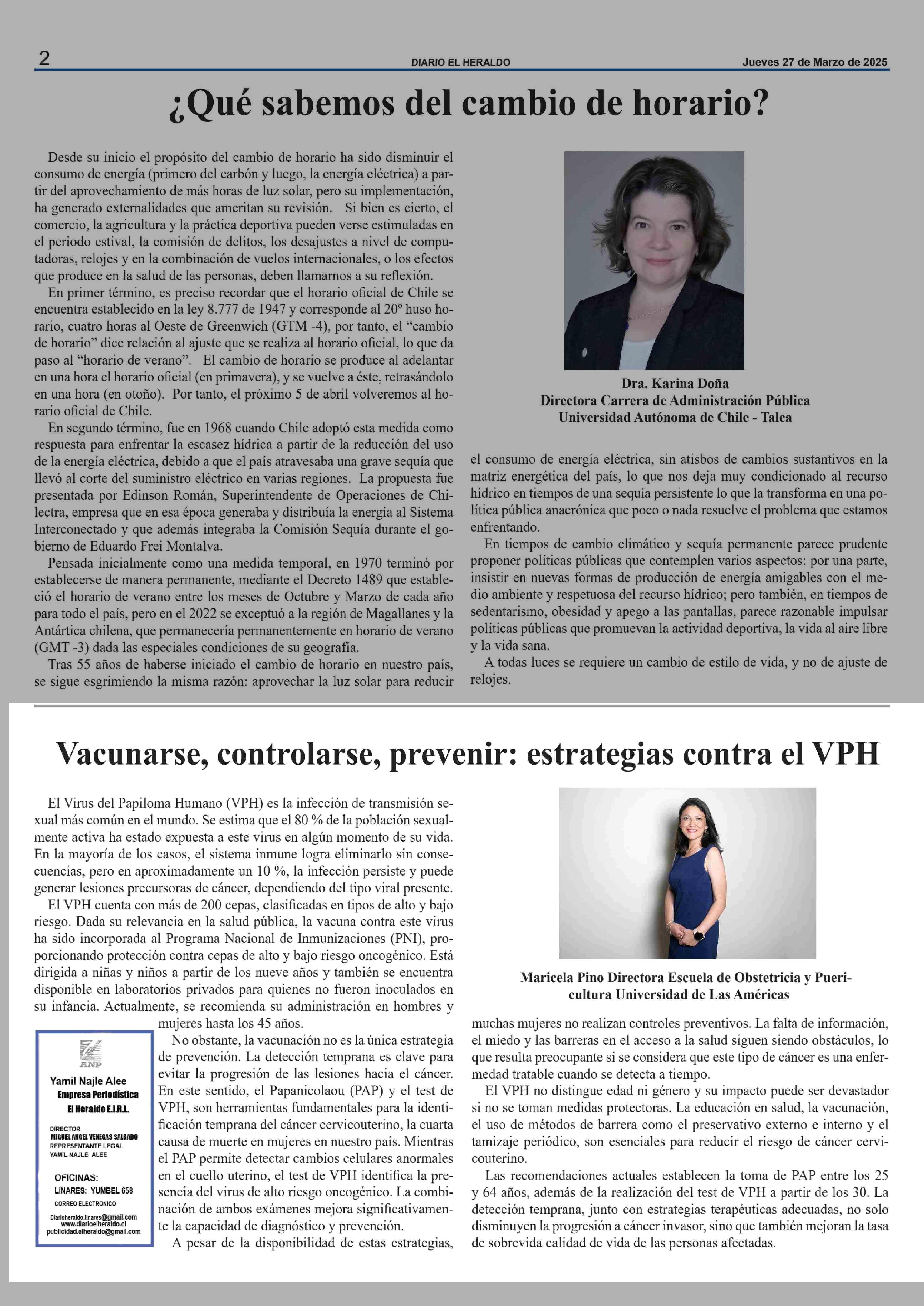 COLUMNAS DE OPINIÓN: Vacunarse, controlarse, prevenir: estrategias contra el VPH 27-03-2025 El Heraldo |