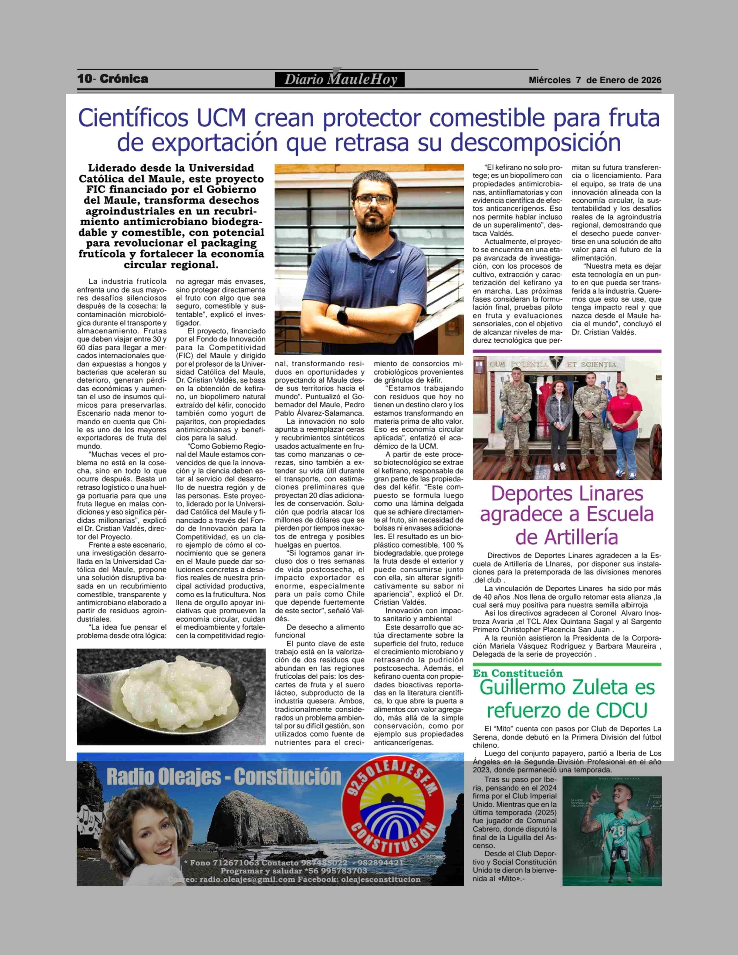 Científicos UCM crean protector comestible para fruta de exportación que retrasa su descomposición 07-01-2026 Maule Hoy |
