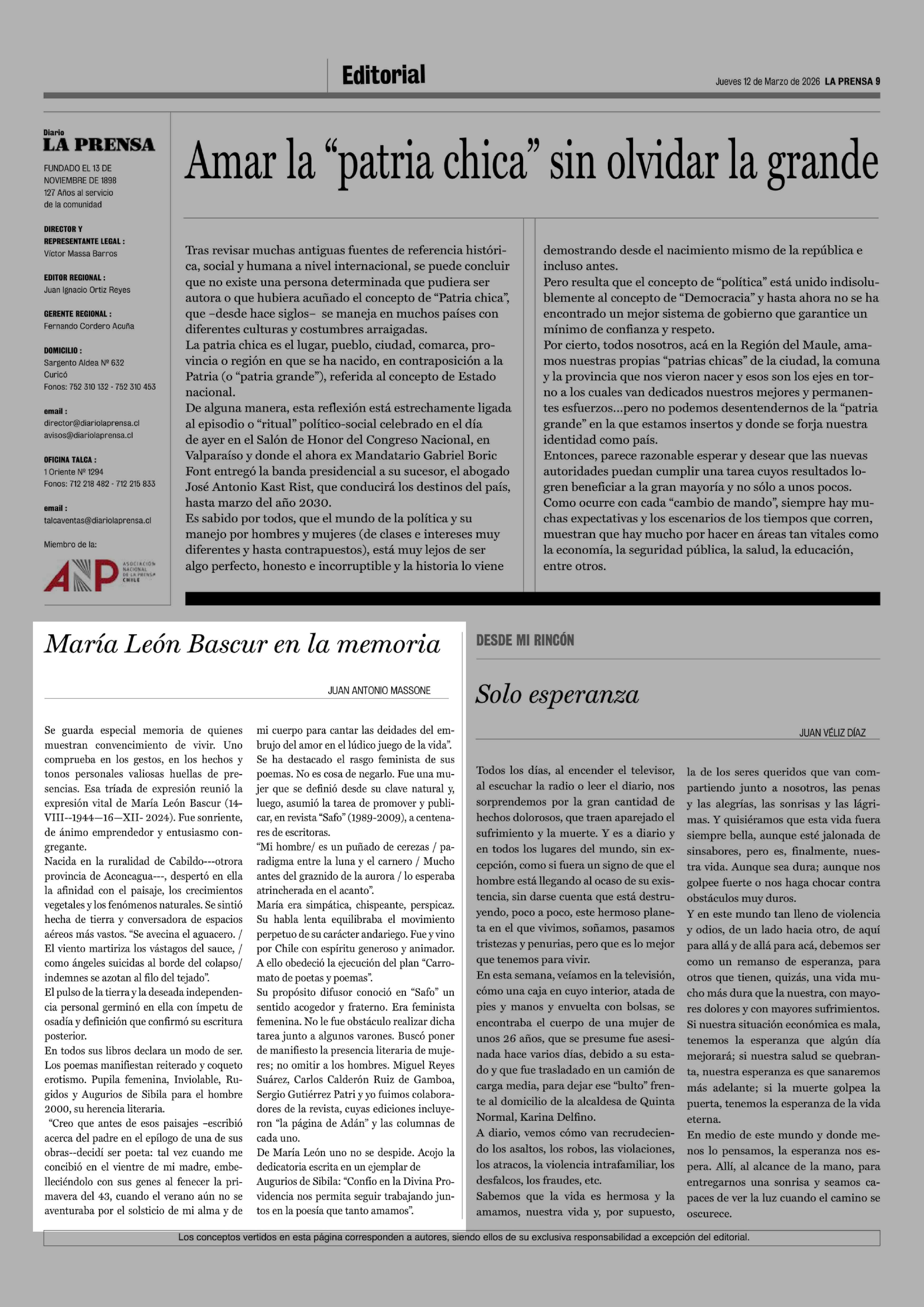 Fuente: La Prensa de Curicó (La Prensa de Curicó) Página(s): 9