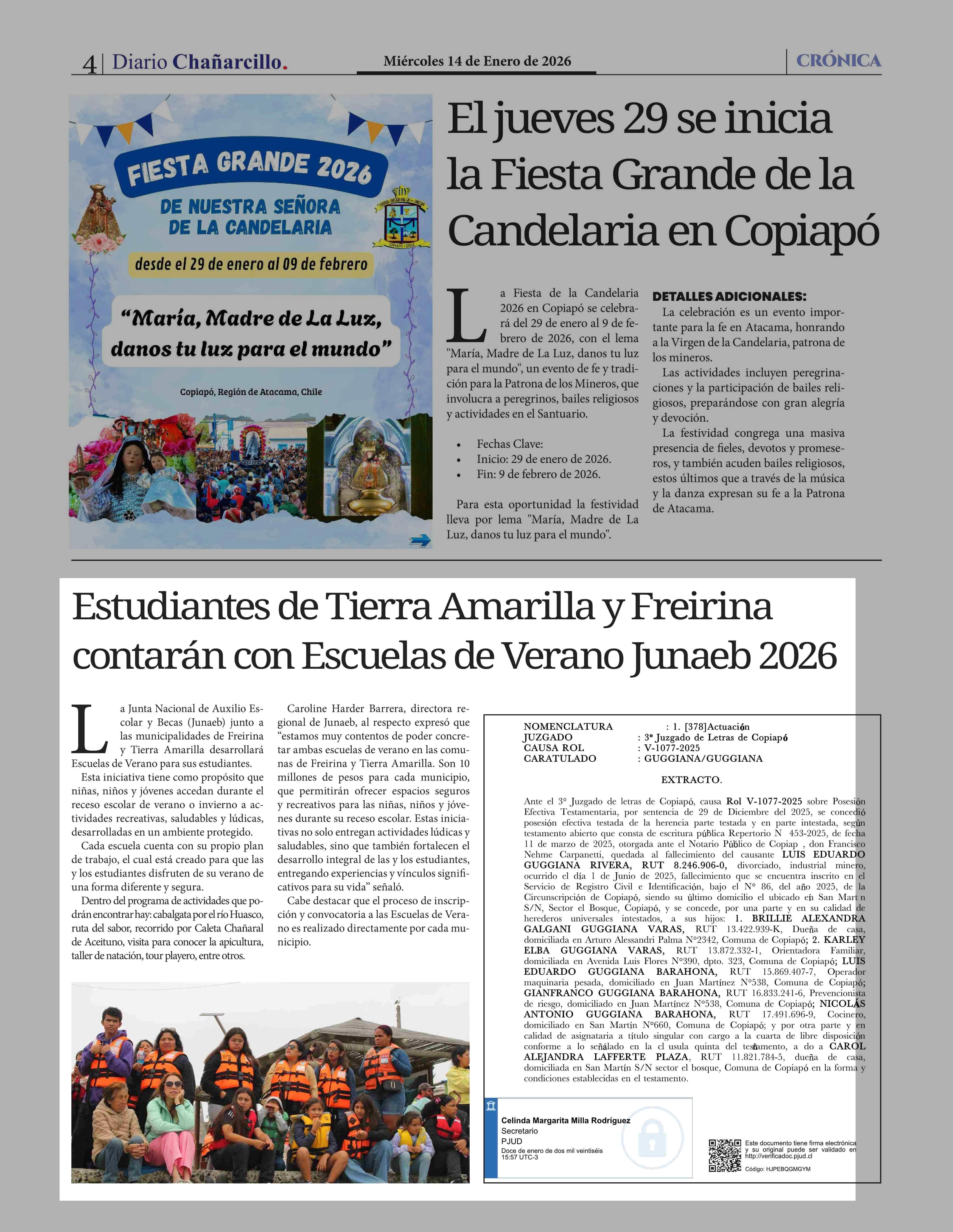 | Fecha: | 14-01-2026 | Sector: | Noticia general | Región: | Región de Atacama |