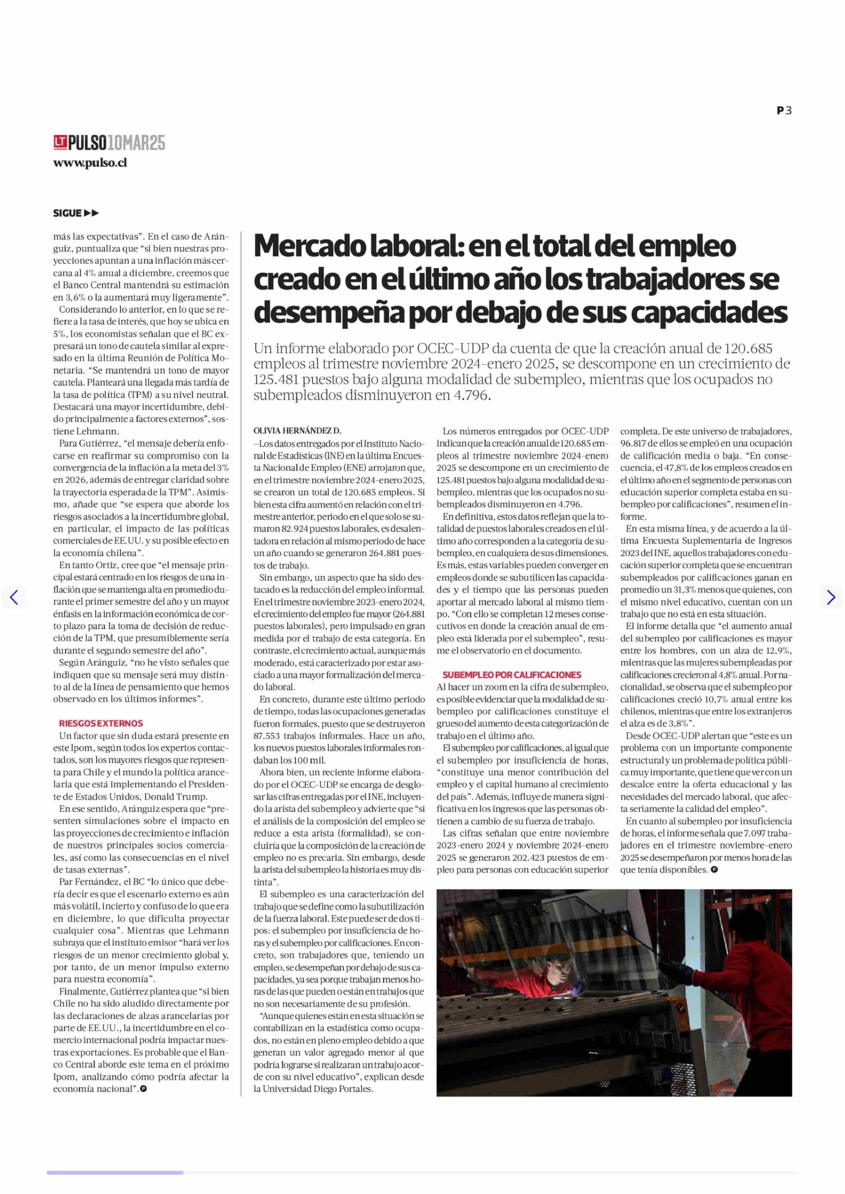 Mercado laboral: en el total del empleo creado en el último año los trabajadores se desempeña por debajo de sus capacidades 10-03-2025 La Tercera |