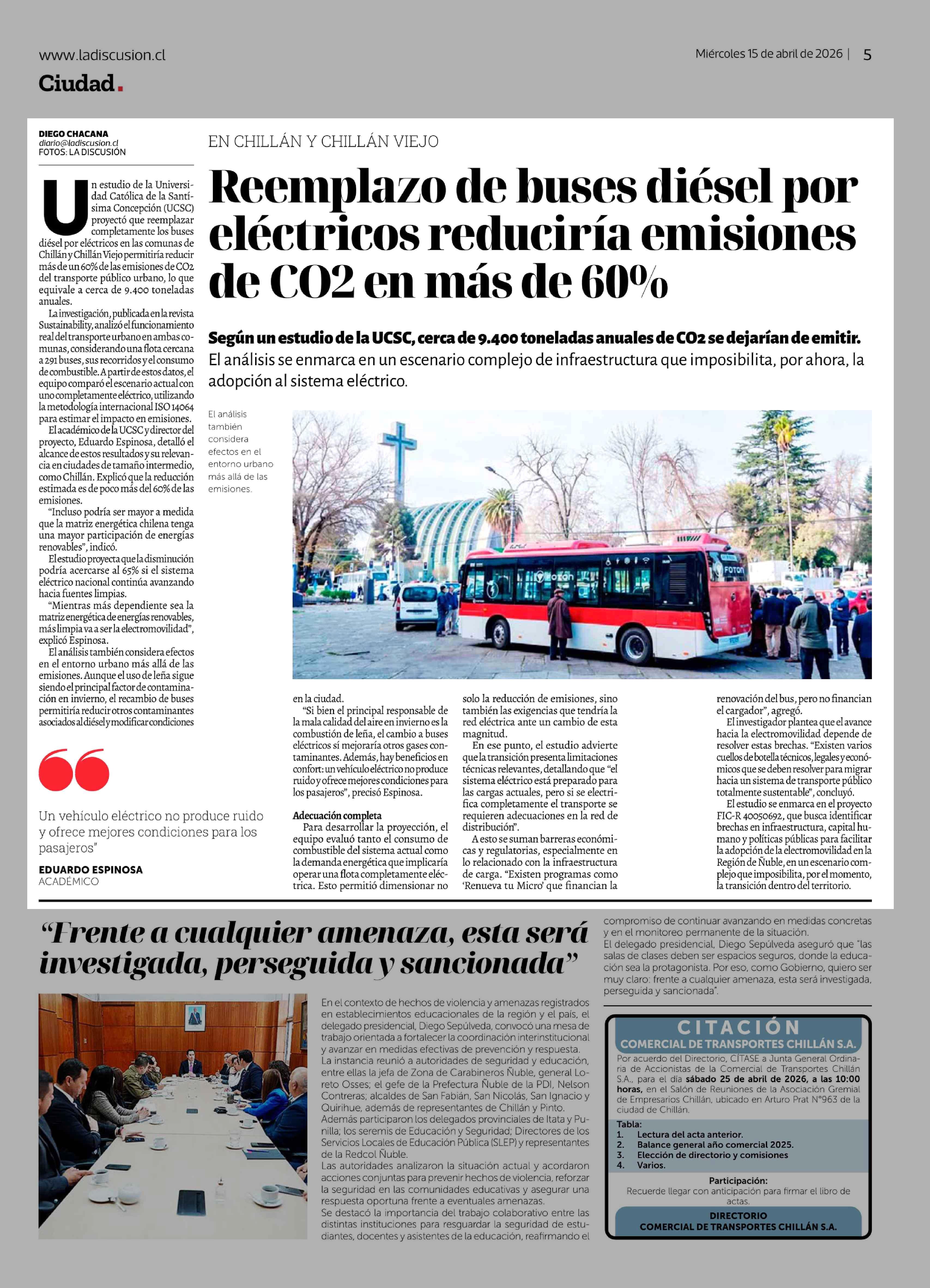 Fecha: 15-04-2026 Sector: Noticia general Región: Región del Ñuble