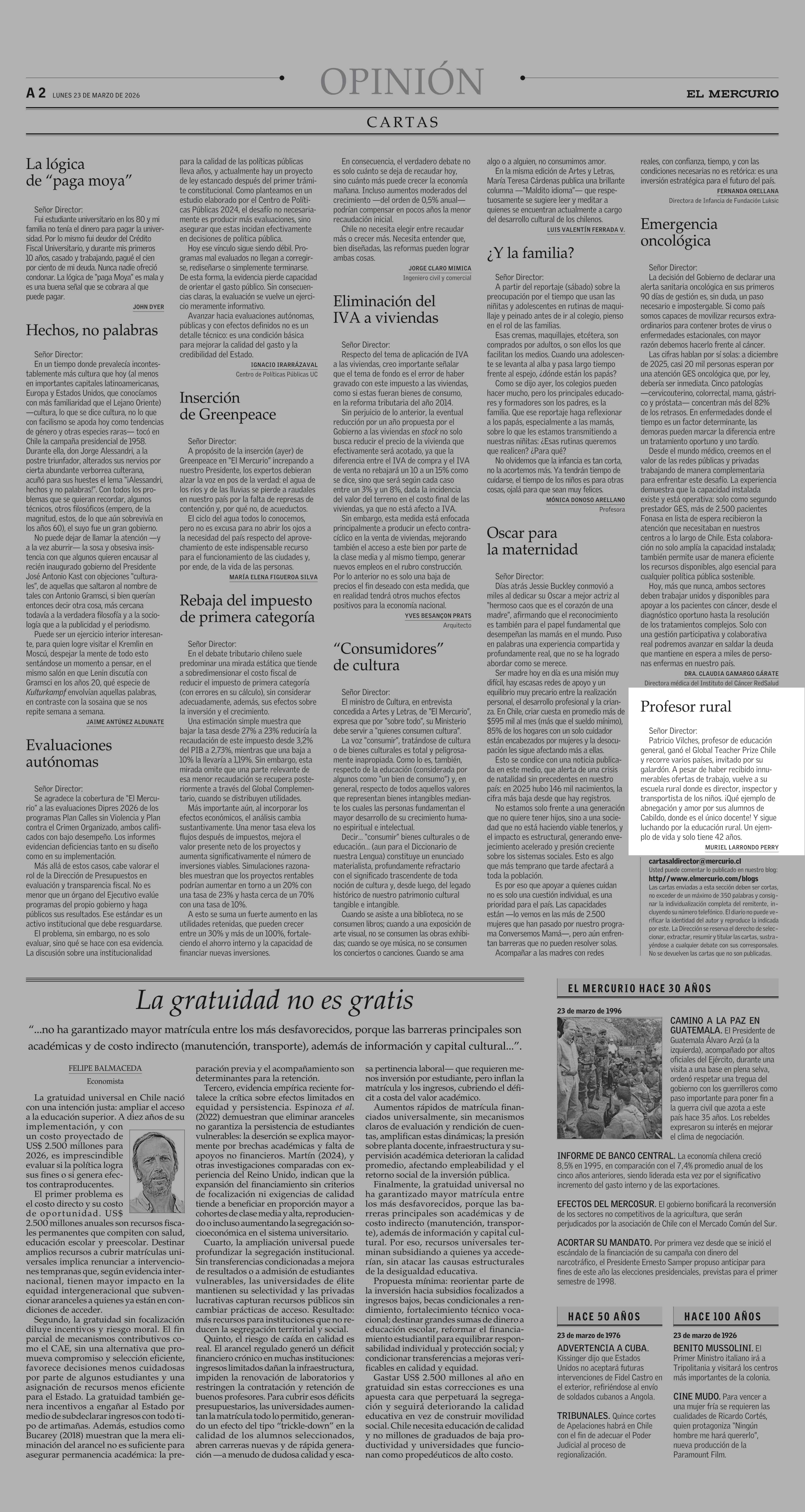 CARTAS: Profesor rural 23-03-2026 El Mercurio |
