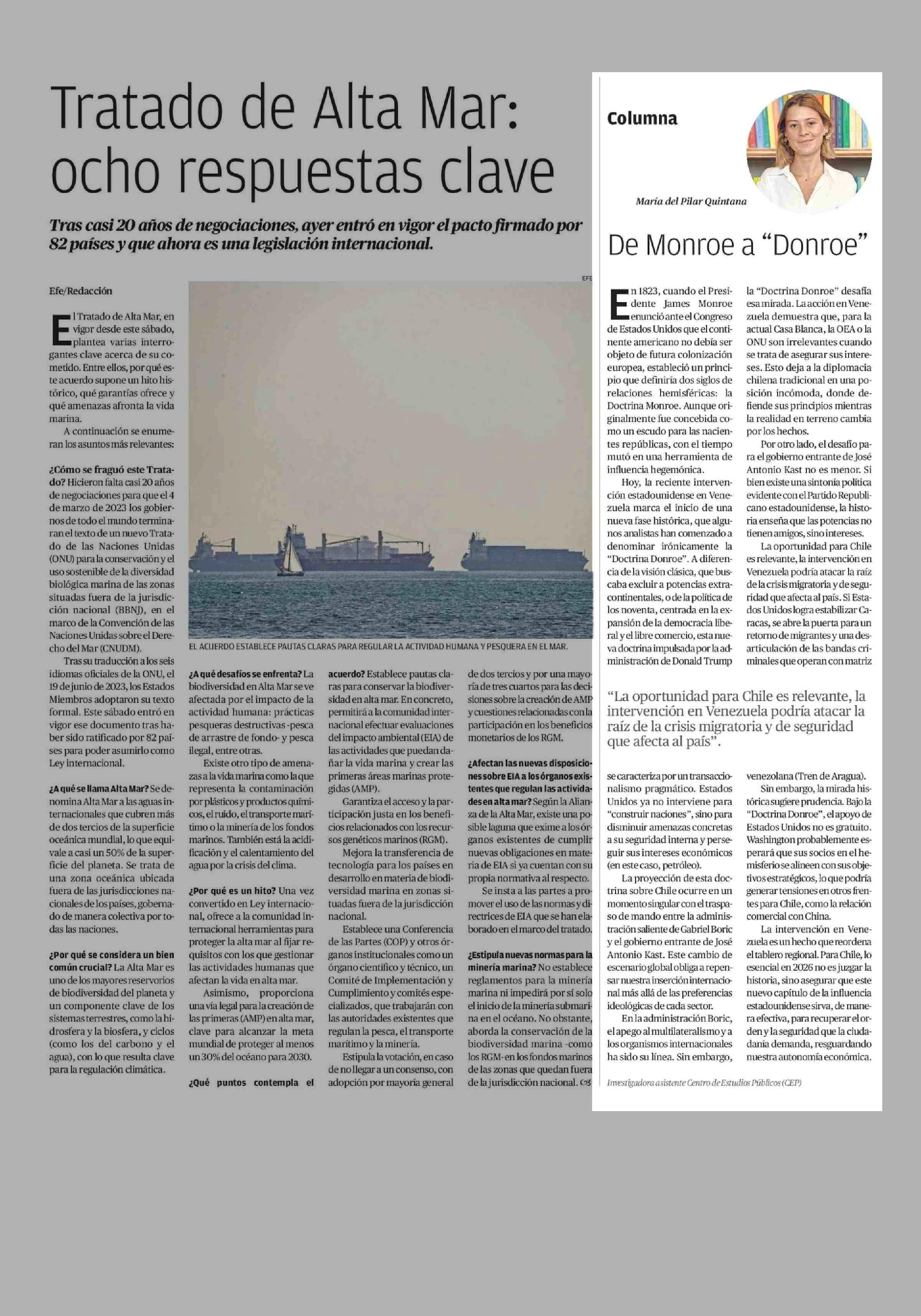 Columnas de Opinión: De Monroe a "Donroe" 18-01-2026 El Mercurio de Antofagasta |