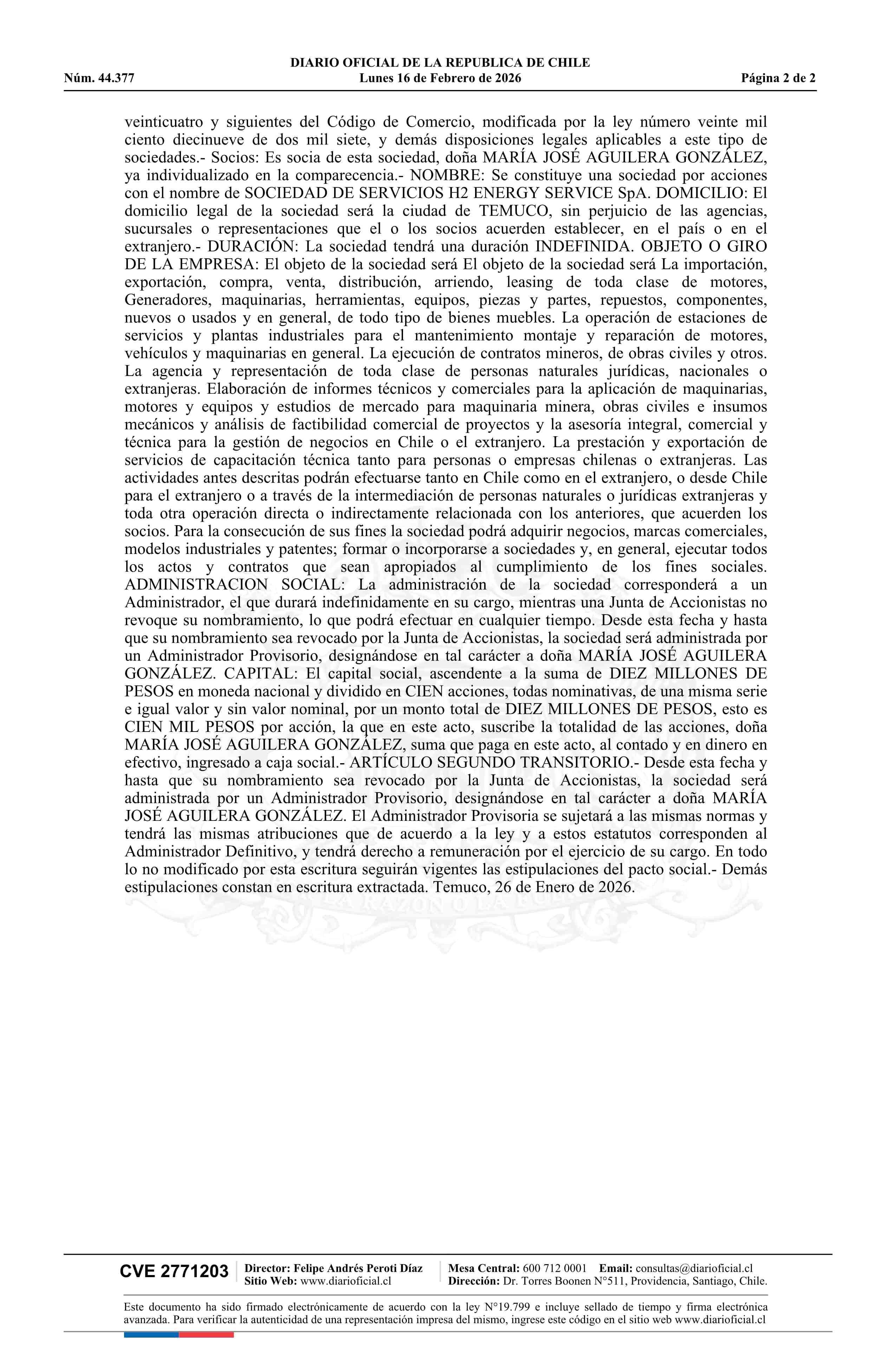 Título: SOCIEDAD DE SERVICIOS H2 ENERGY SERVICES LIMITADA 77.406.305-6*