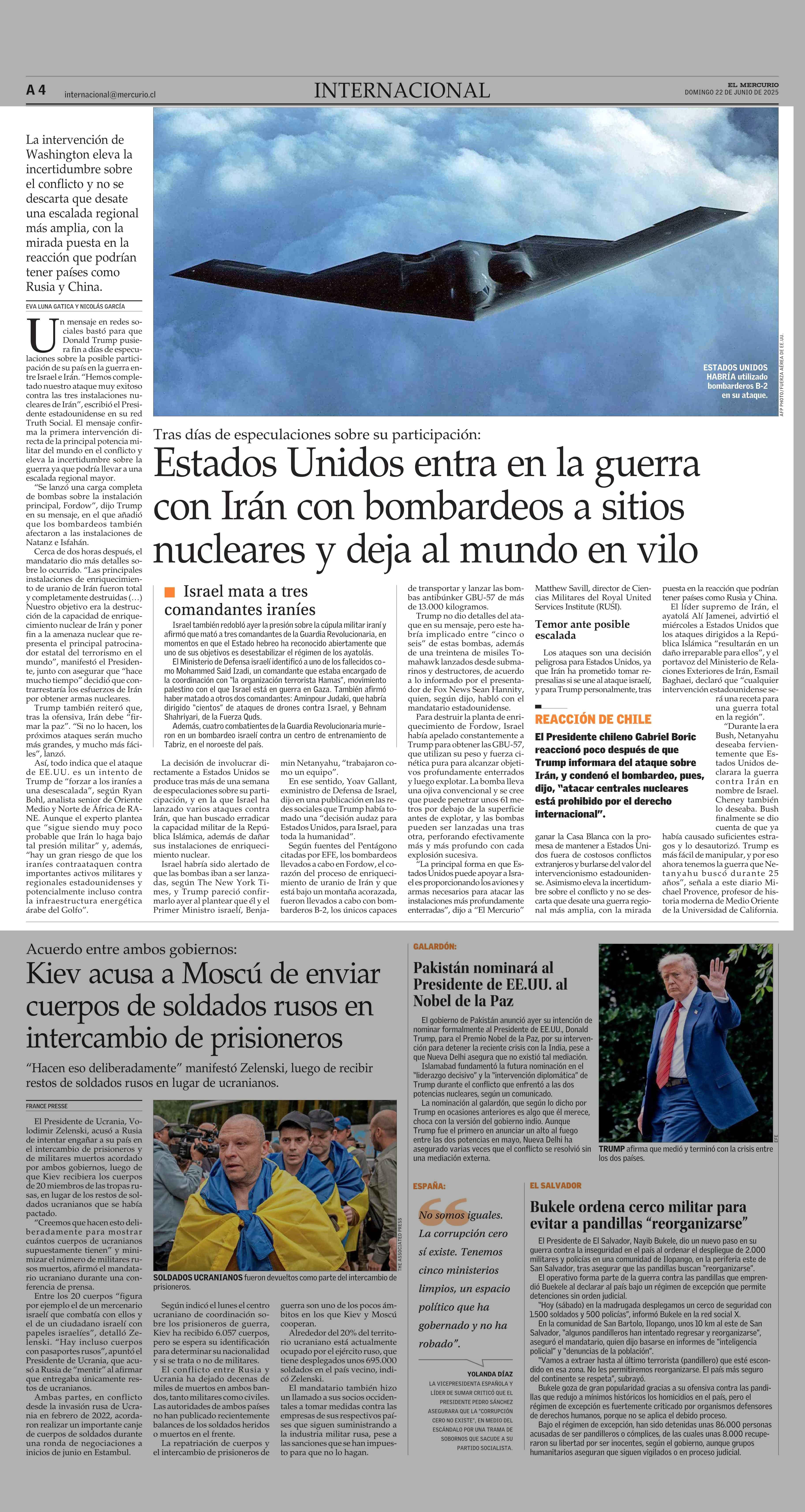 Estados Unidos entra en la guerra con Irán con bombardeos a sitios nucleares y deja al mundo en vilo 22-06-2025 El Mercurio |