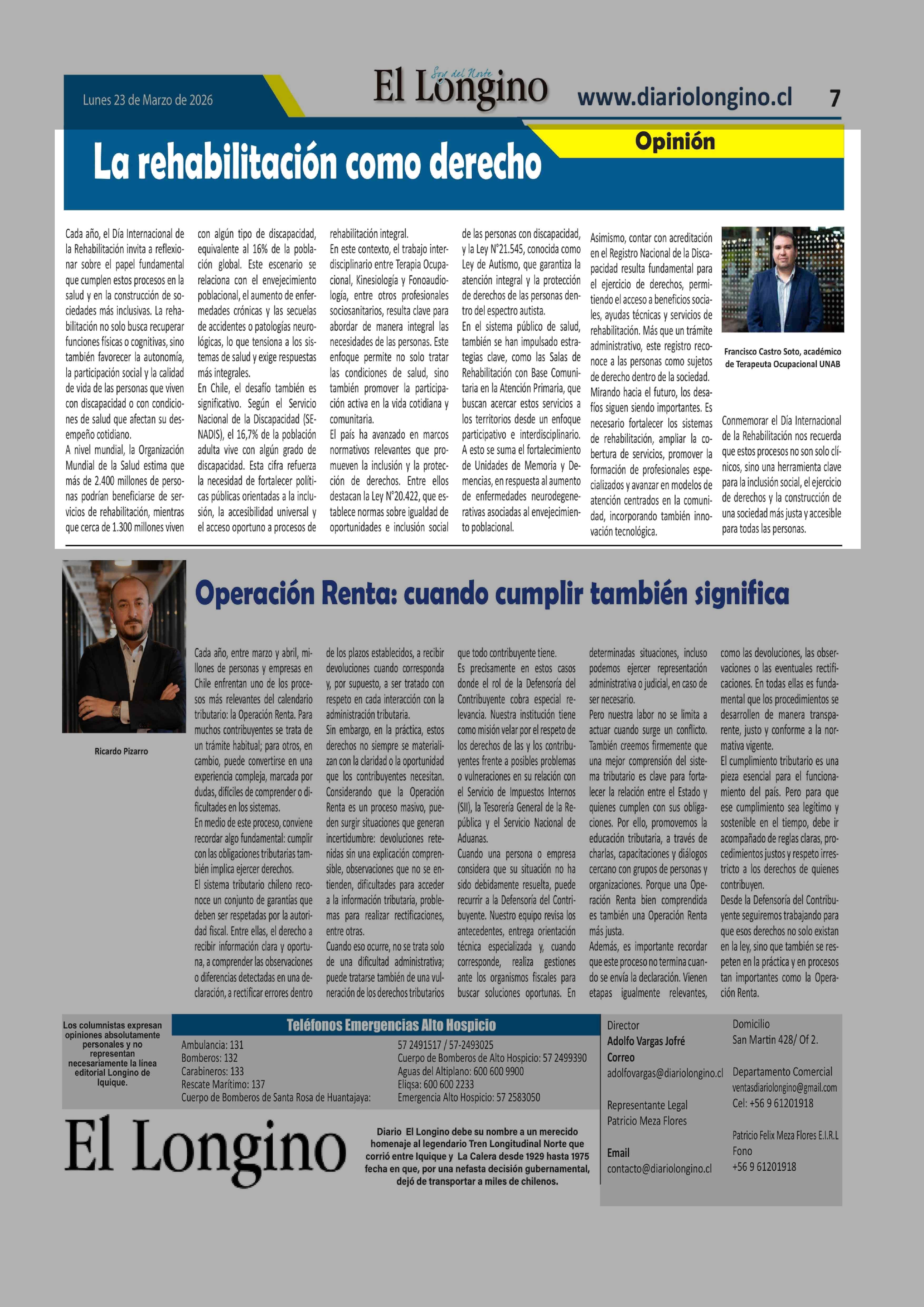 Fecha: 23-03-2026 Sector: Columnas de Opinión Región: Región de Tarapacá