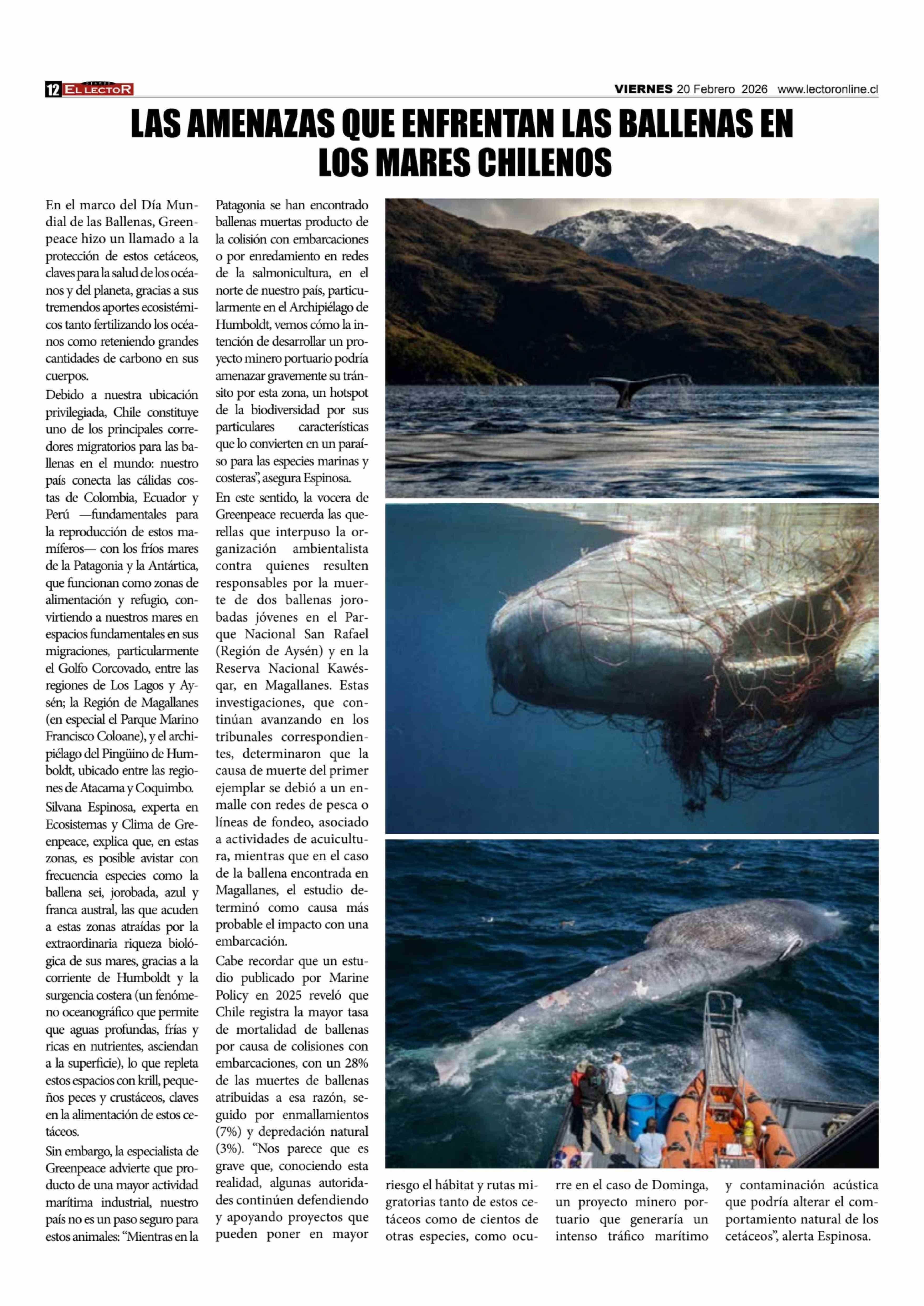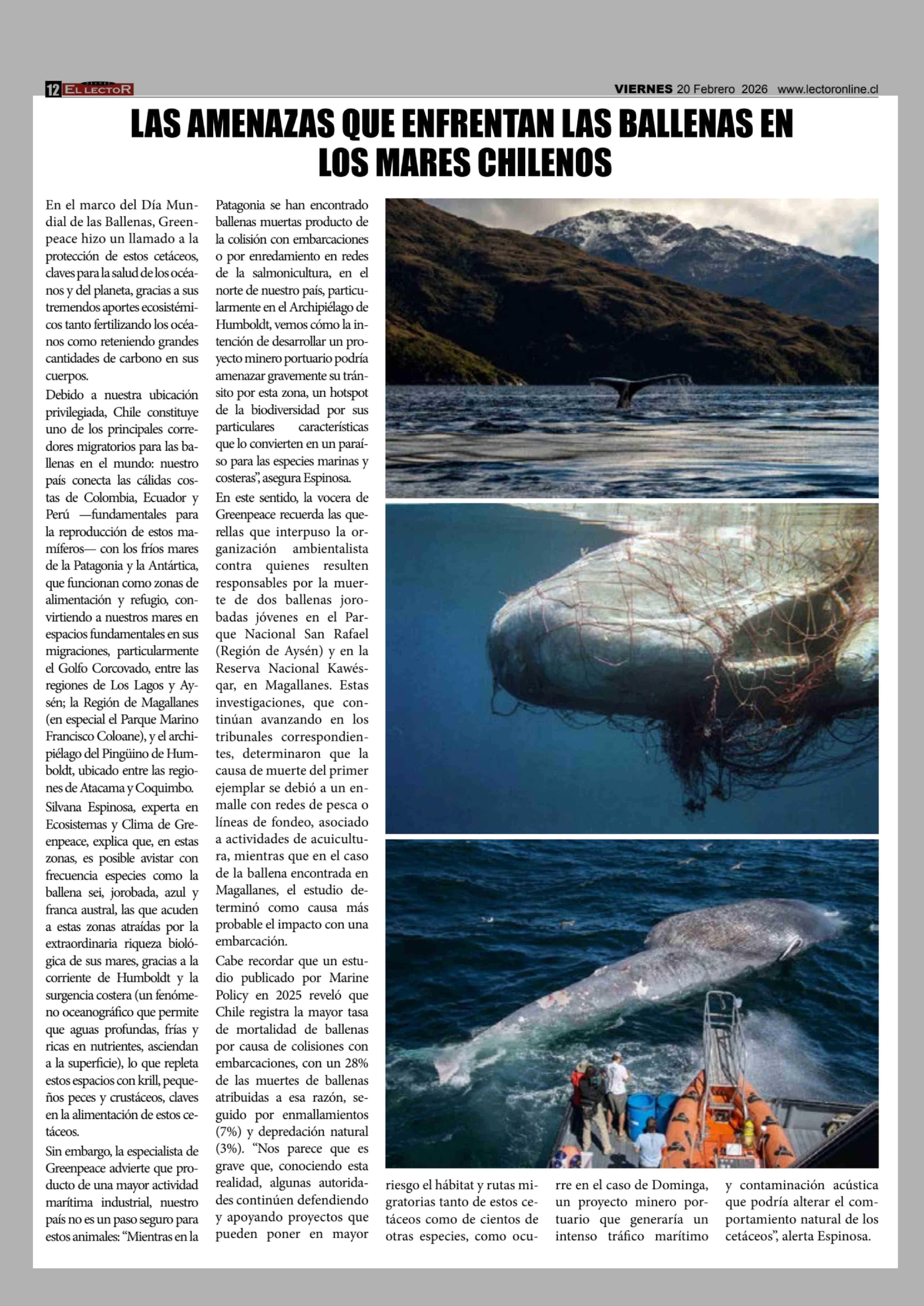 LAS AMENAZAS QUE ENFRENTAN LAS BALLENAS EN LOS MARES CHILENOS 20-02-2026 El Lector |