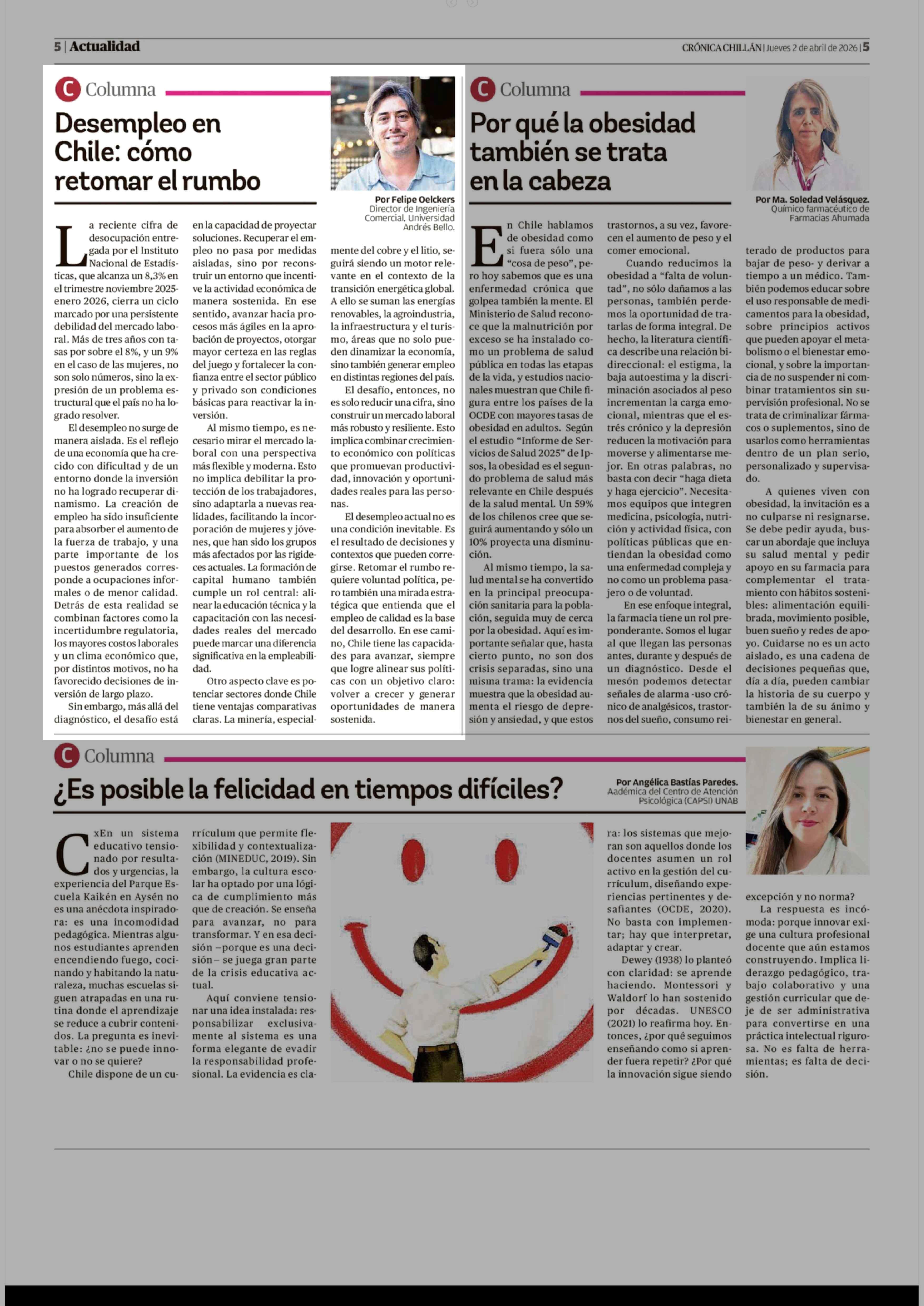 Columnas de Opinión: Desempleo en Chile: cómo retomar el rumbo 02-04-2026 Crónica de Chillán |