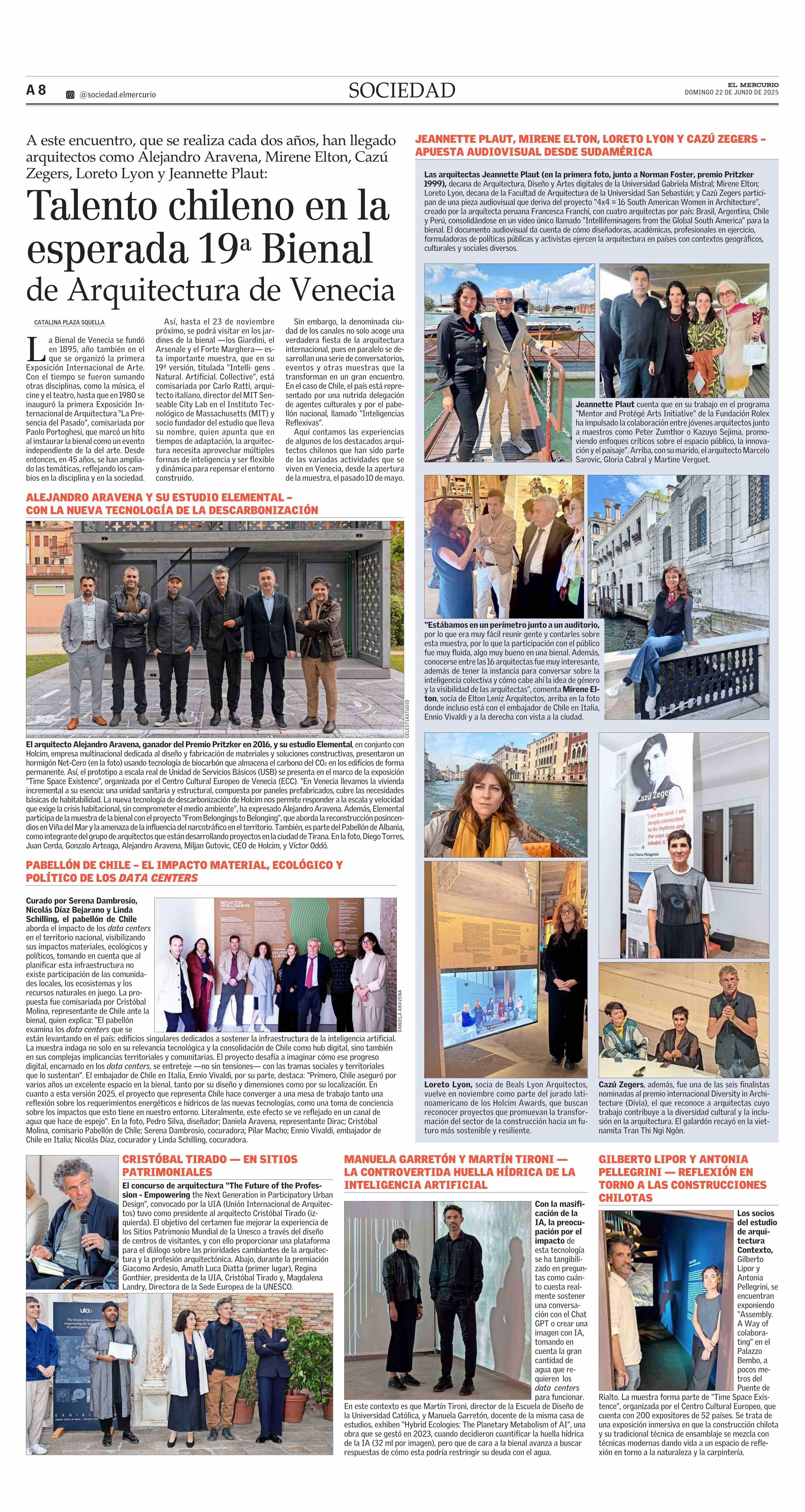 Talento chileno en la esperada 19 Bienal de Arquitectura de Venecia 22-06-2025 El Mercurio |