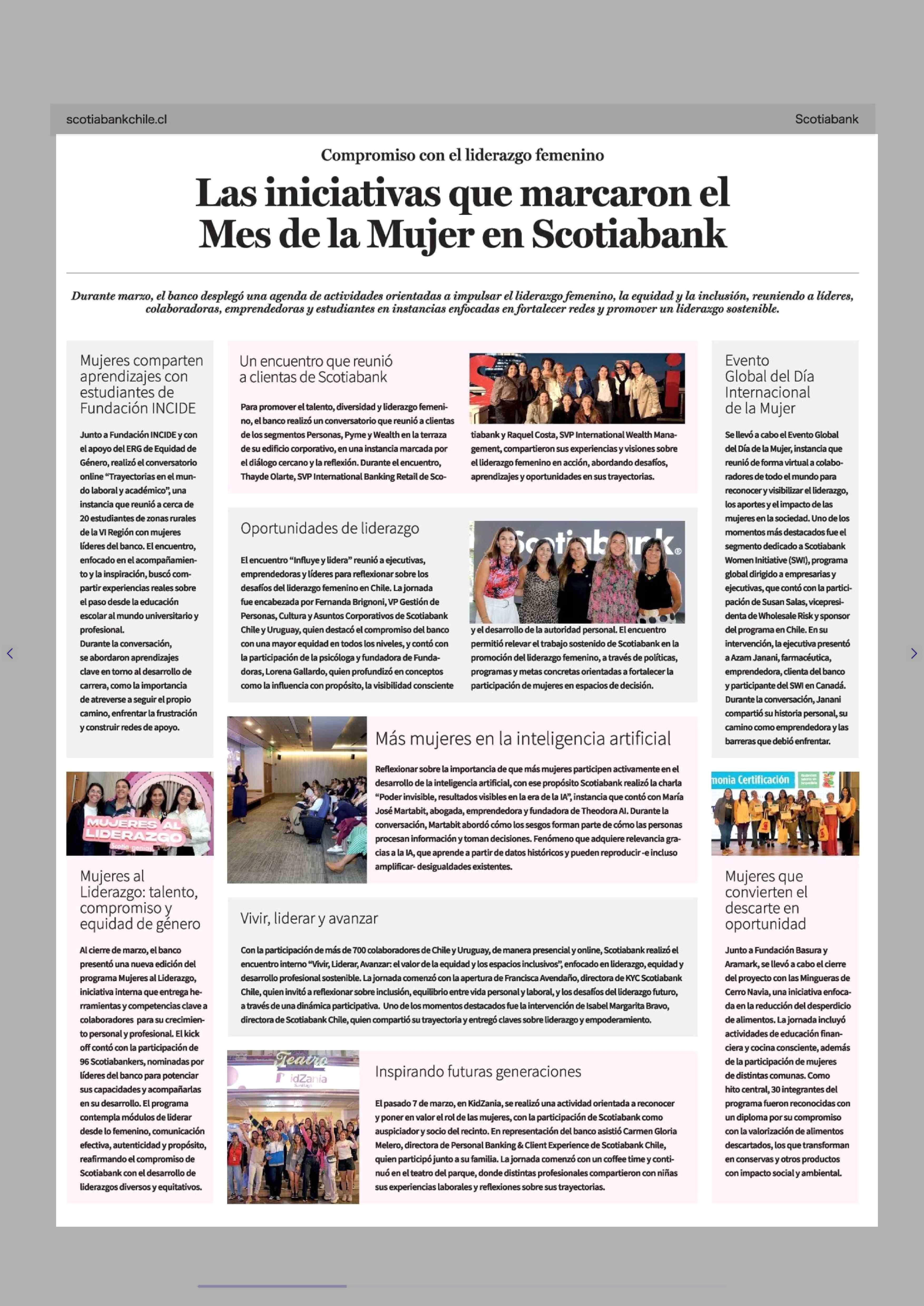 Las iniciativas que marcaron el Mes de la Mujer en Scotiabank 12-04-2026 La Tercera |