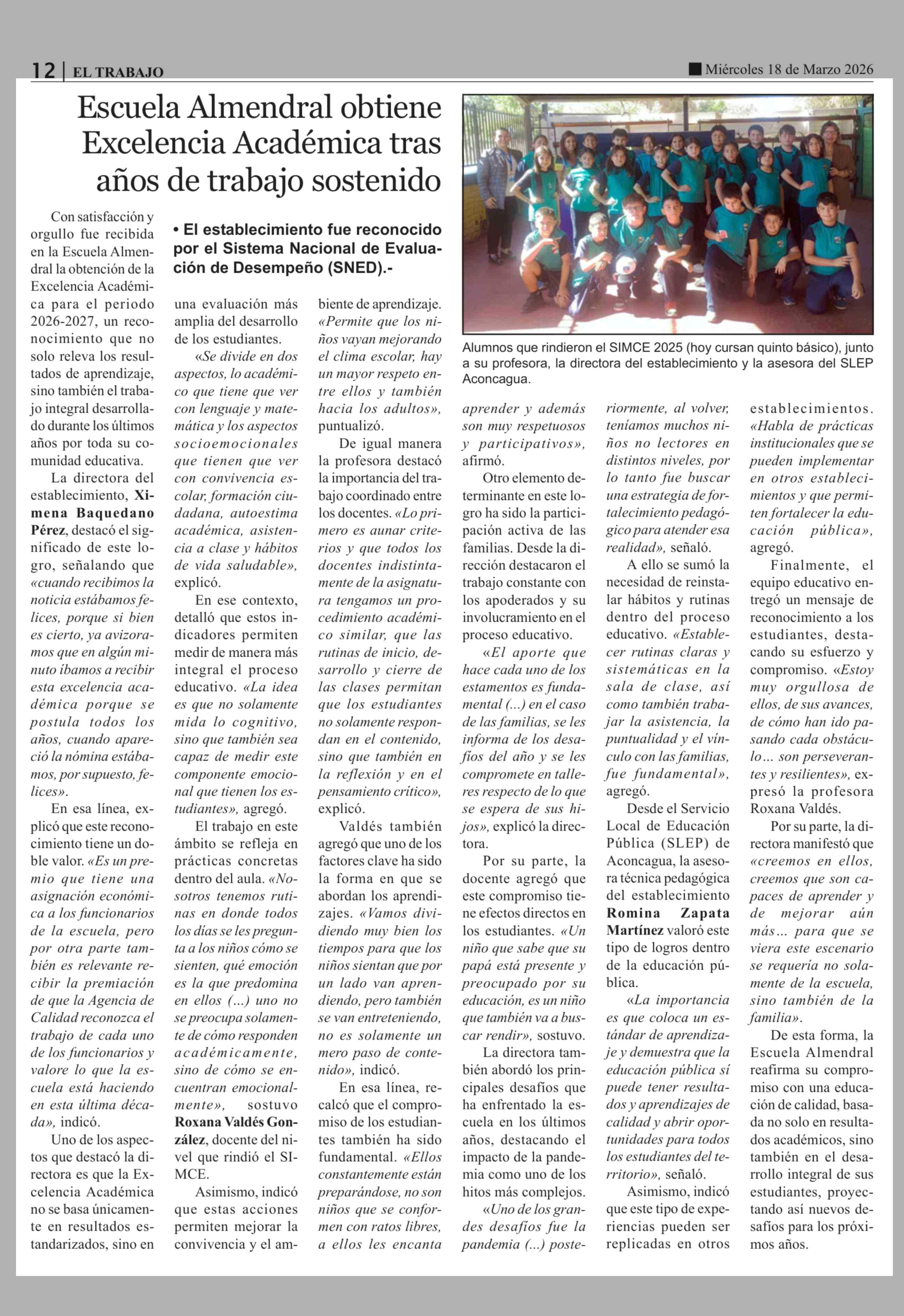 Título: Escuela Almendral obtiene Excelencia Académica tras años de trabajo sostenido