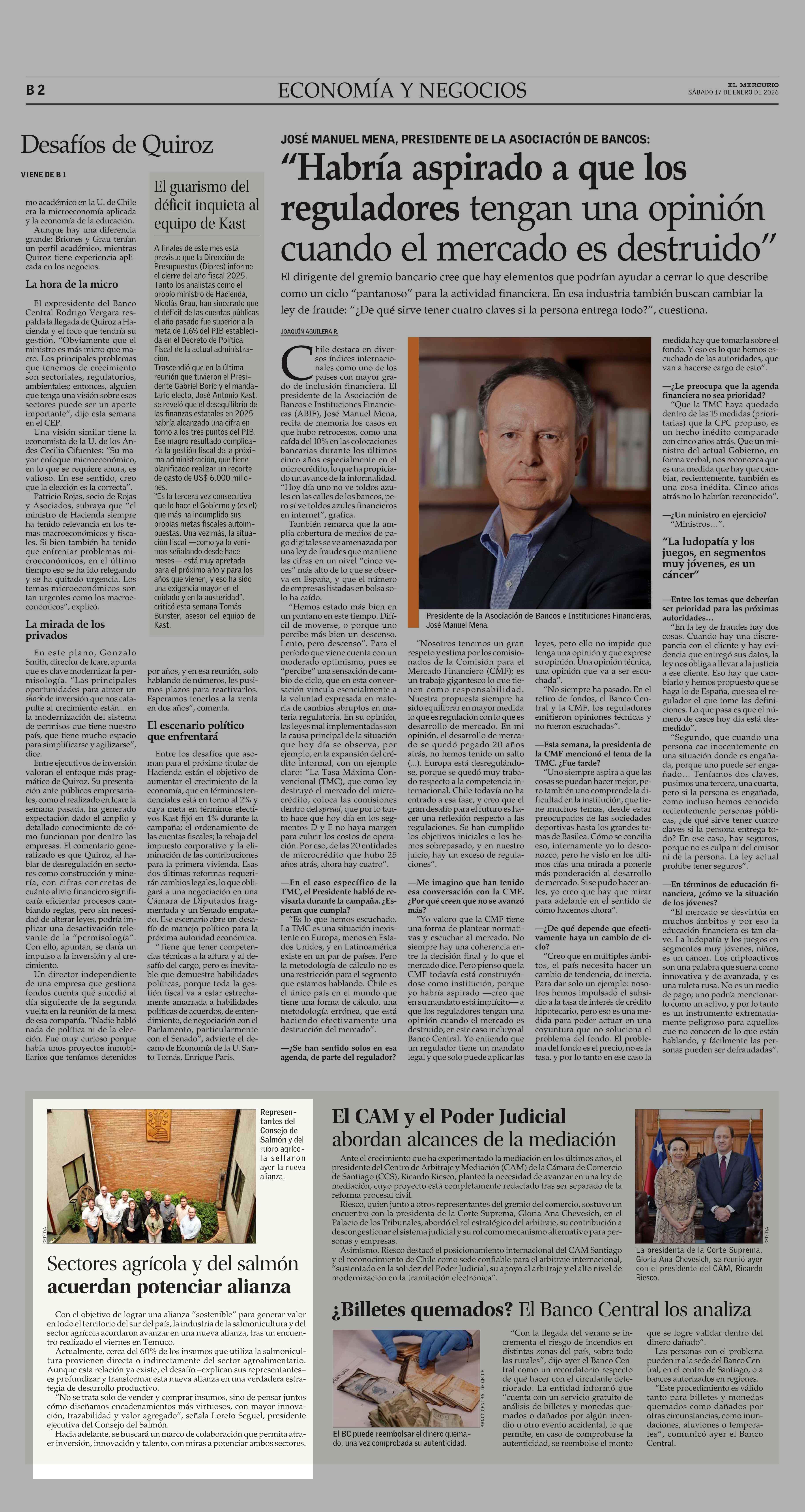 Sectores agrícola y del salmón acuerdan potenciar alianza 17-01-2026 El Mercurio |