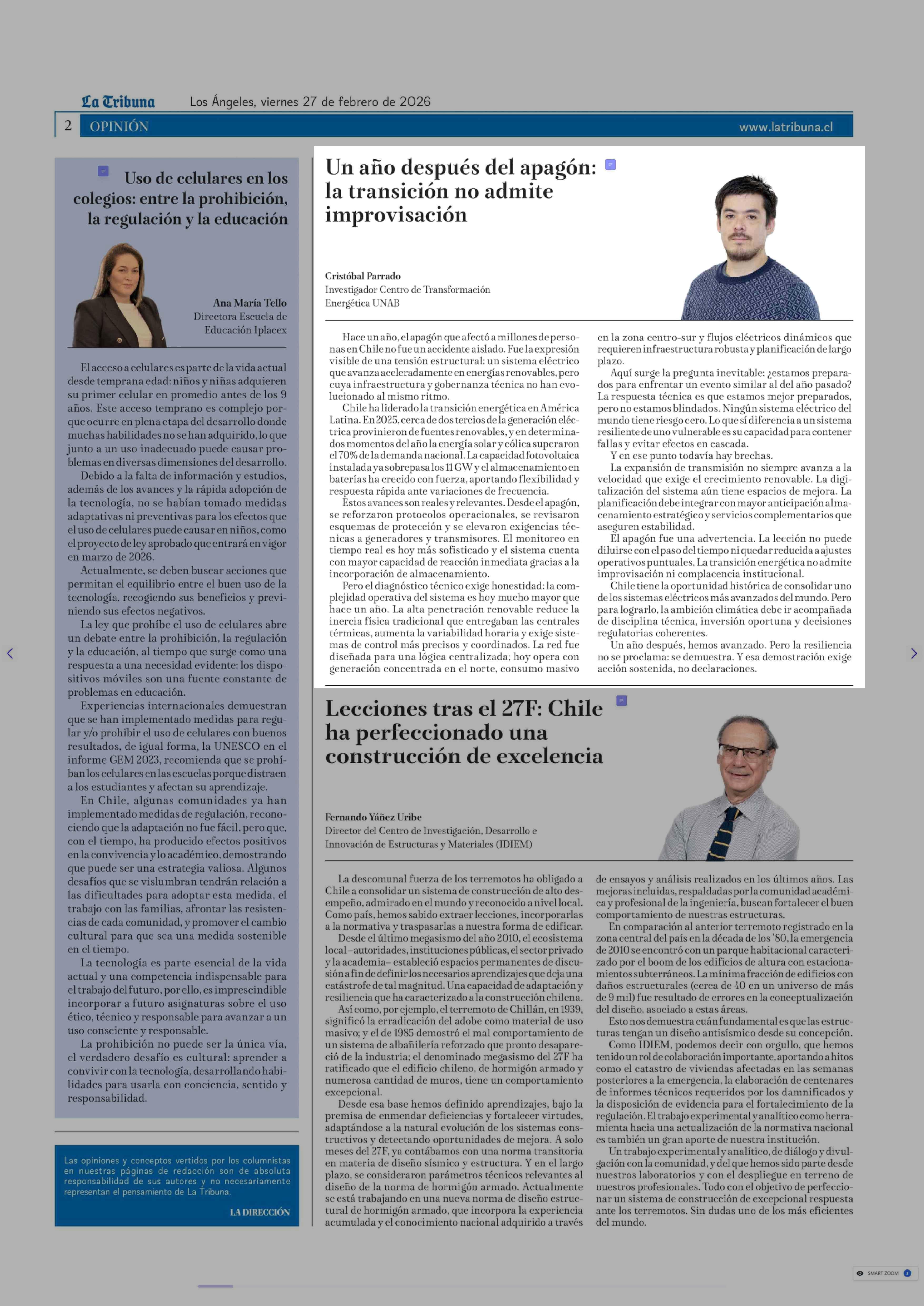 Columnas de Opinión: Un año después del apagón: la transición no admite improvisación 27-02-2026 La Tribuna |