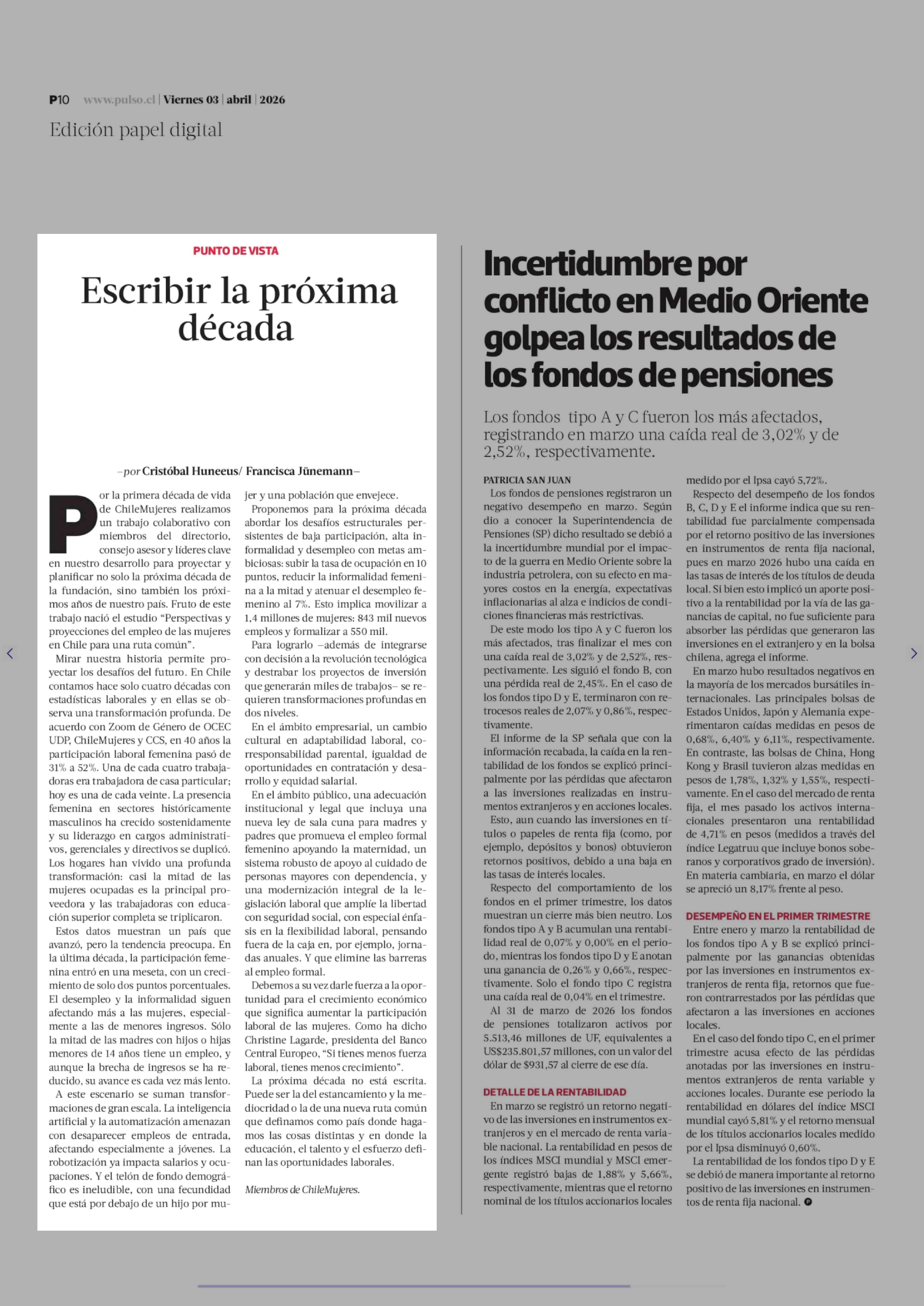 Columnas de Opinión: Escribir la próxima década 03-04-2026 La Tercera |